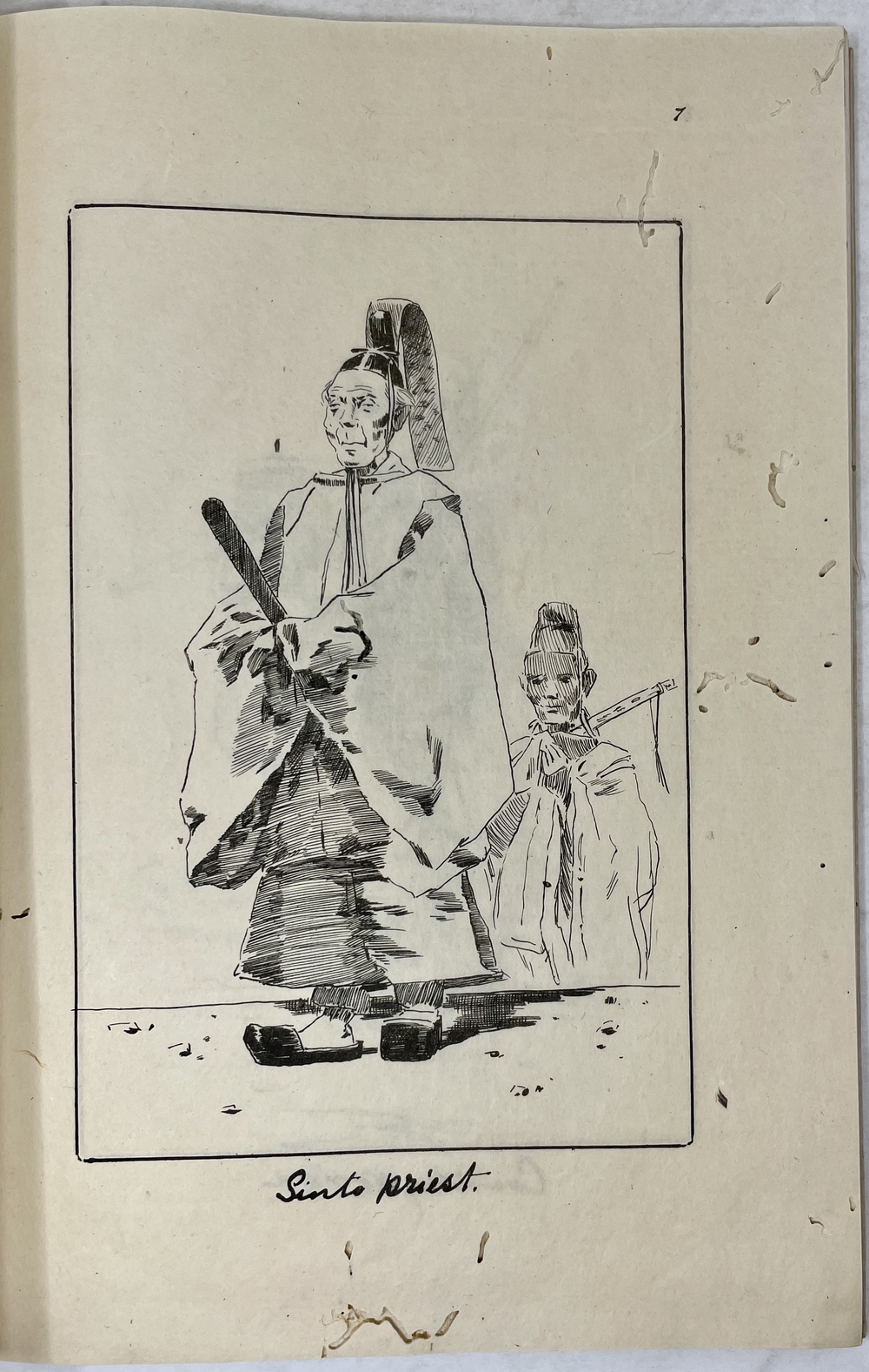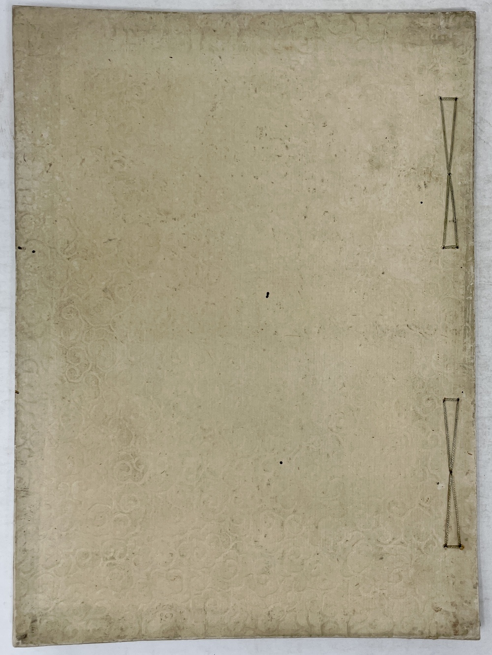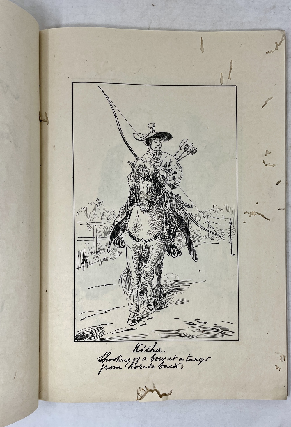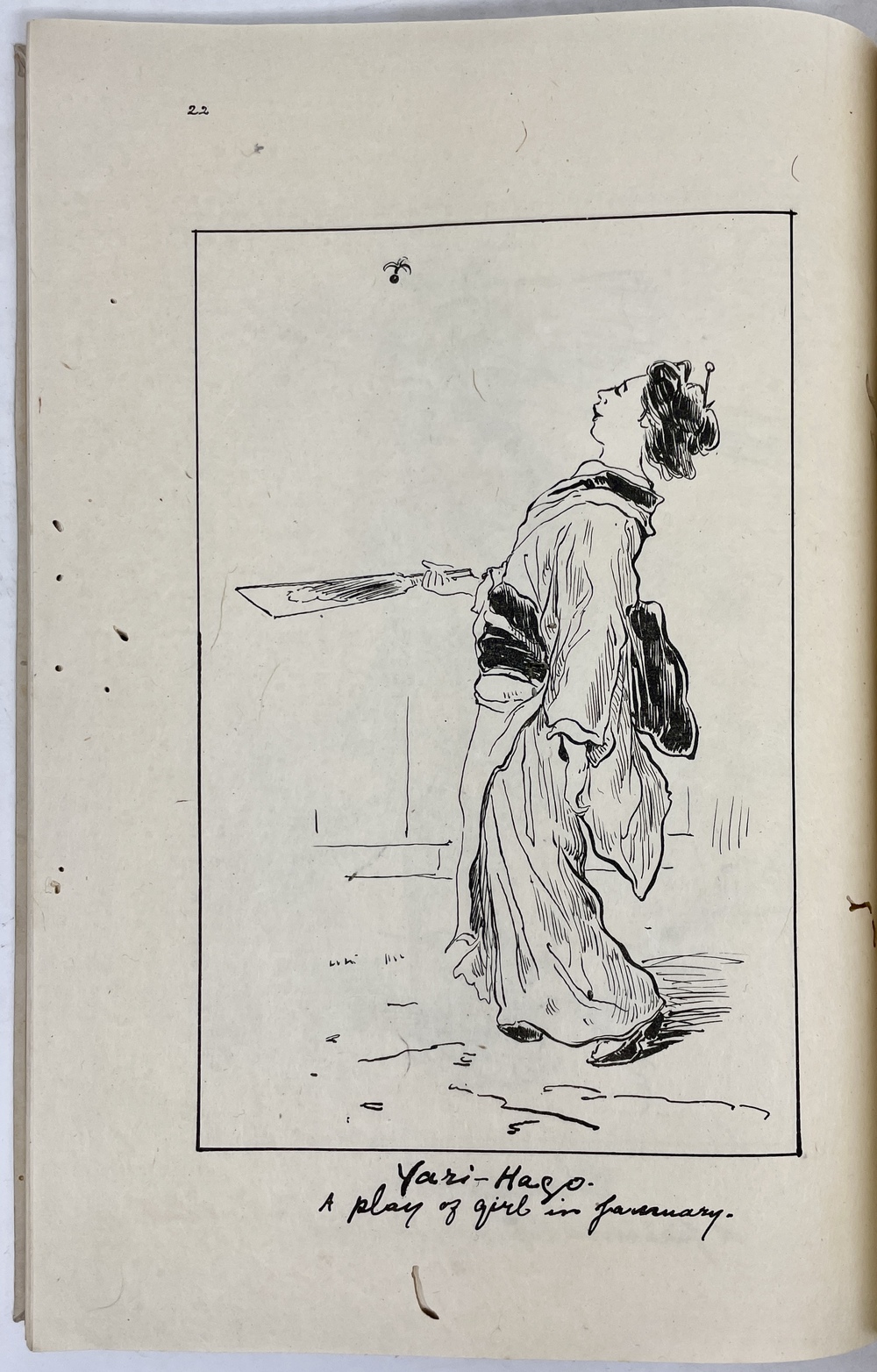 Printed on folded papers, bound in Japanese style, tied. Original card board with an original illustrated title paper.