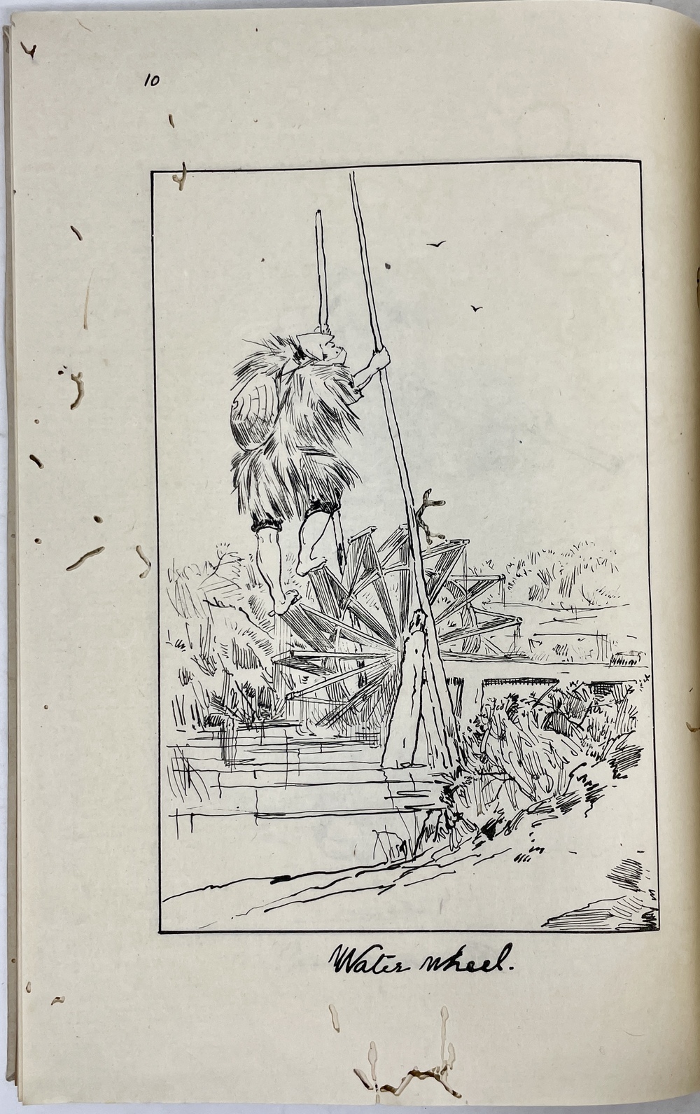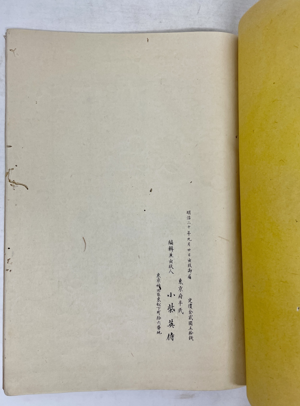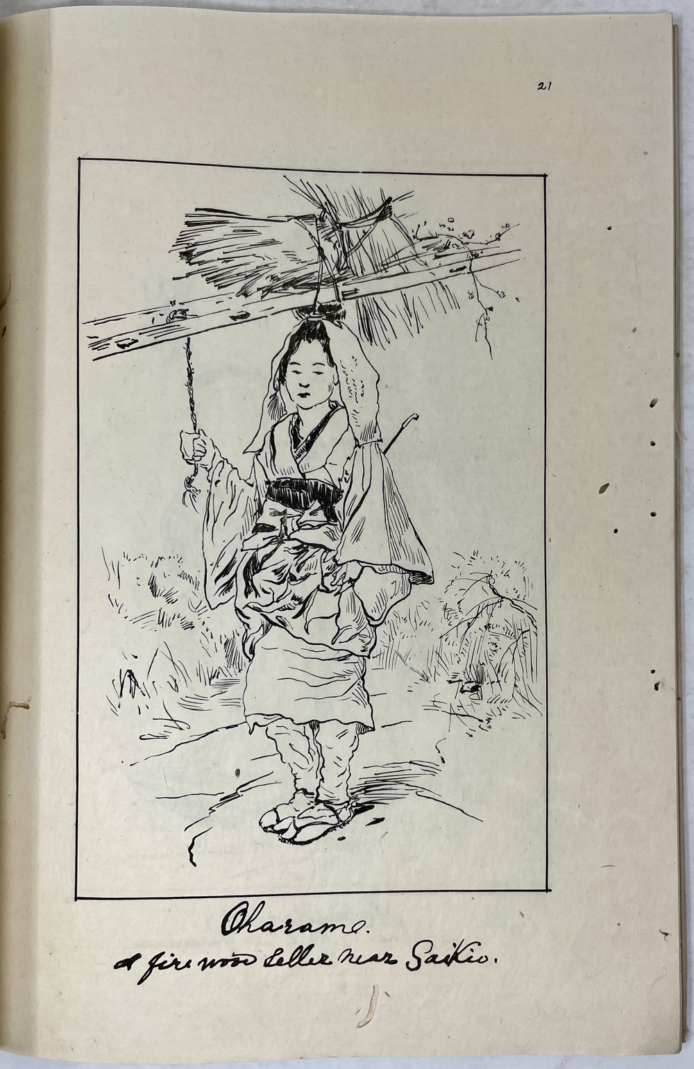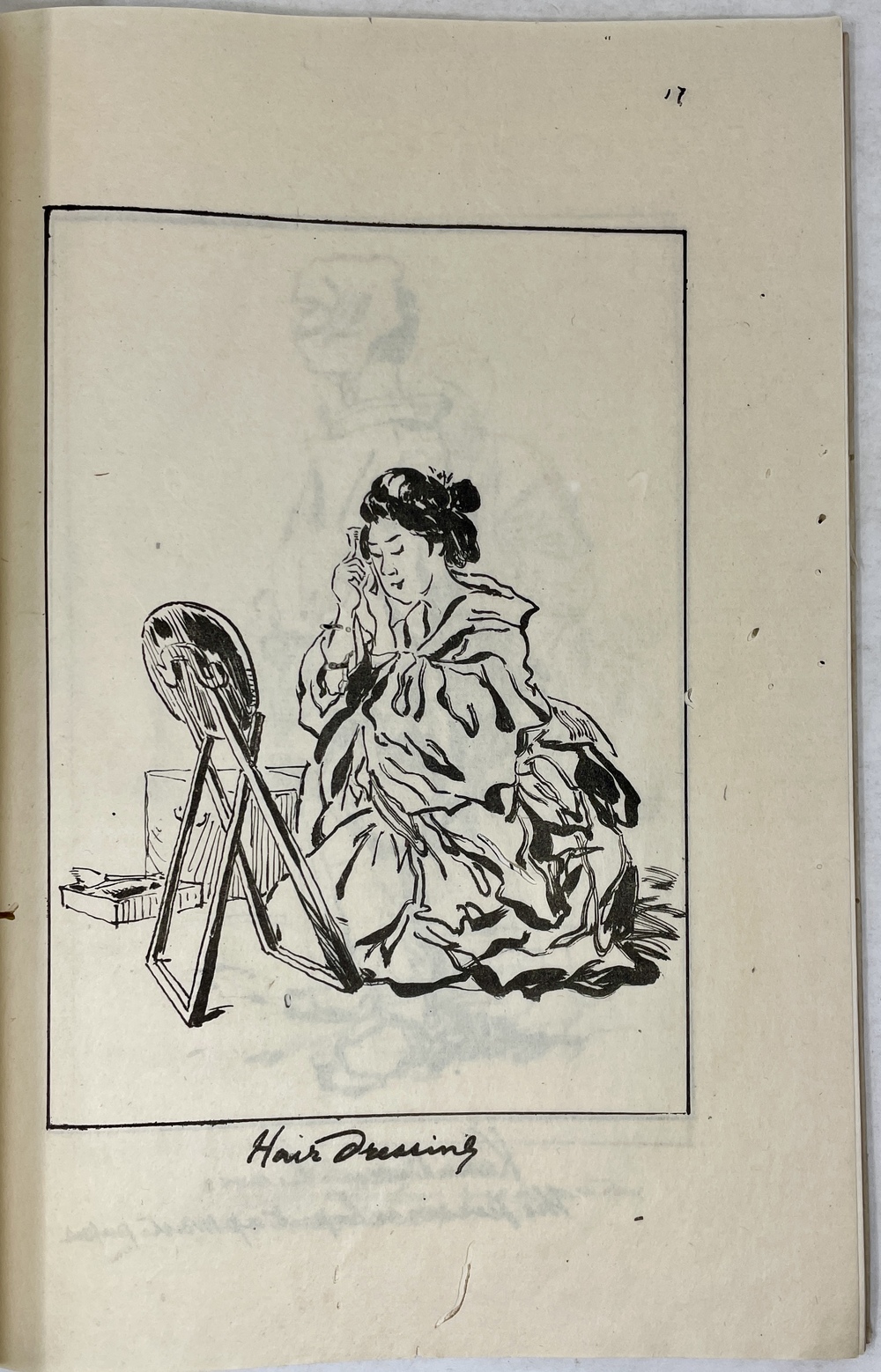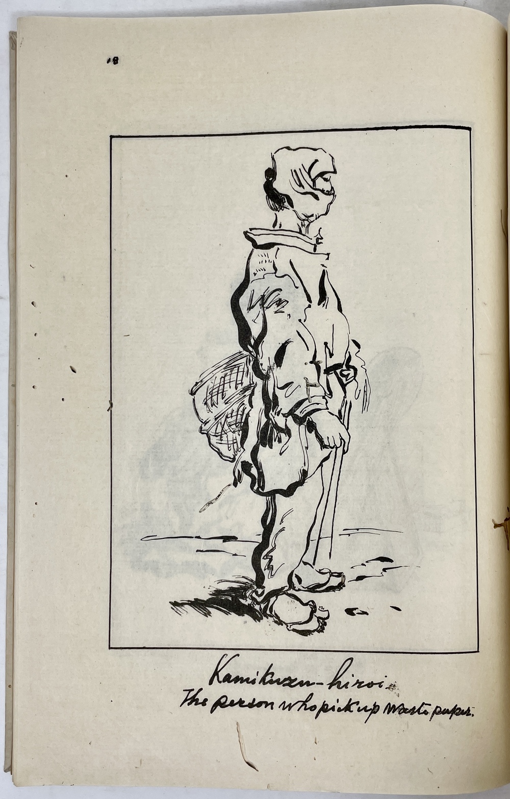 Printed on folded papers, bound in Japanese style, tied. Original card board with an original illustrated title paper.