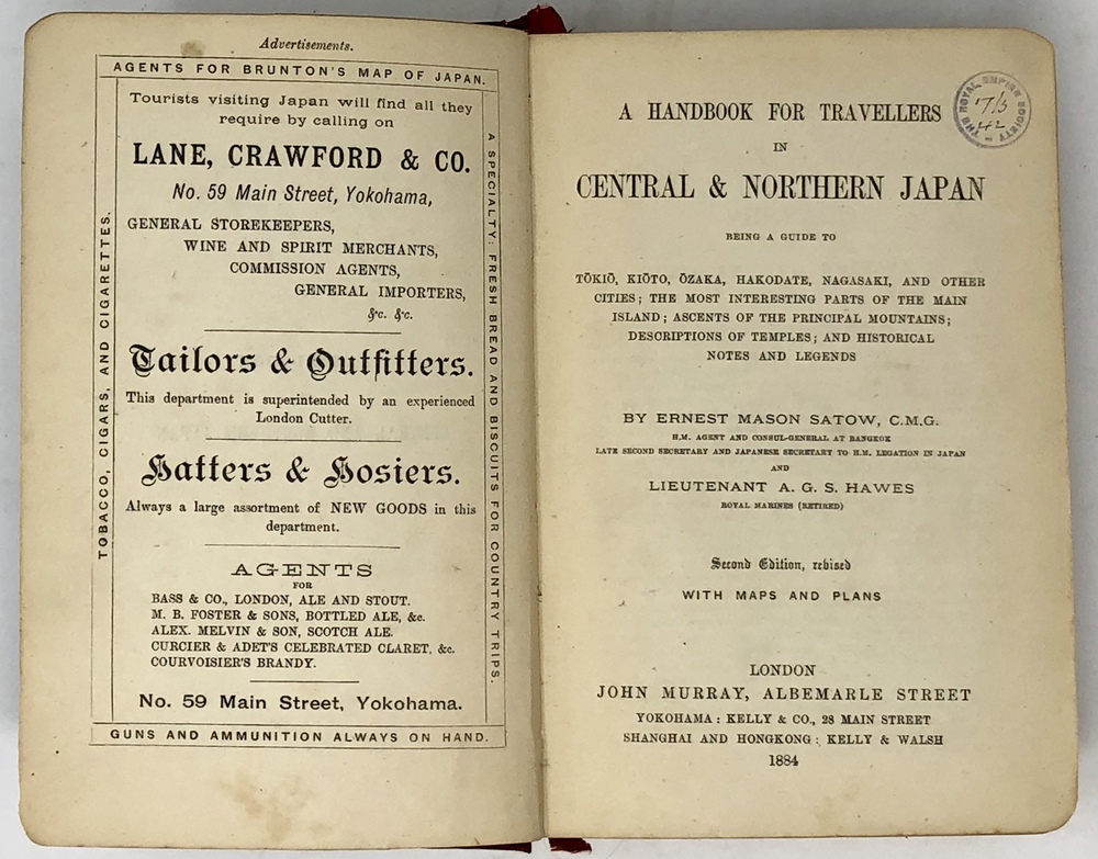 A HANDBOOK FOR TRAVELLERS IN CENTRAL & NORTHERN JAPAN...