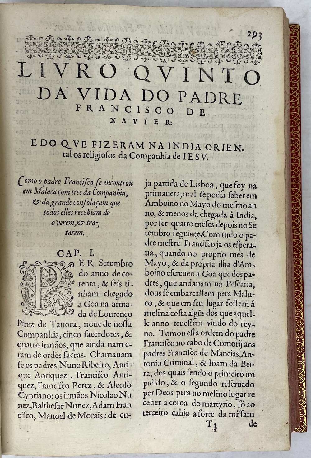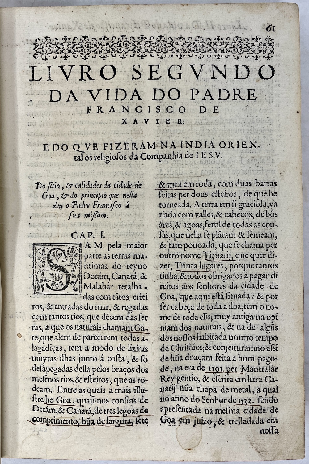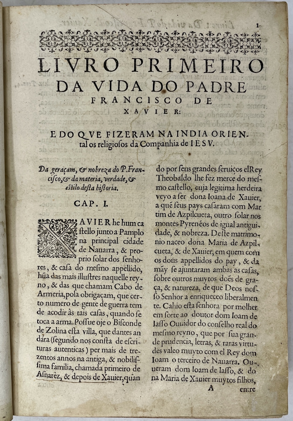 「イエズス会士であり、文筆家でもあるジョアン・デ・ルセナの代表作。ザビエルの人柄や行い、他のイエズス会士のこと、歴史や地理的な記述が見られる。イエズス会やポルトガル人がアジアに与えた影響、ゴアから日本そして中国までの地理、ヨーロッパの商人のこと、東洋の様々な宗教やカトリックの布教の可能性などについても言及している。本書はリスボンで1600年に出版された初版で、その後イタリア語版や、カスティリア語版が出版されるなど様々な言語に翻訳されている。」