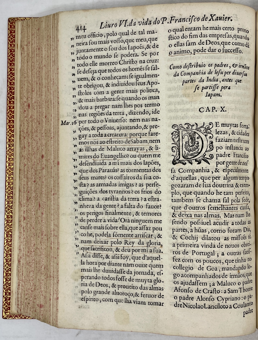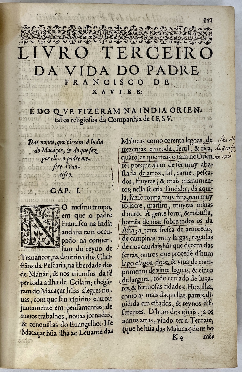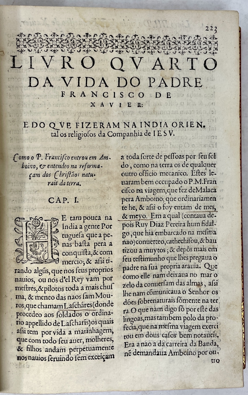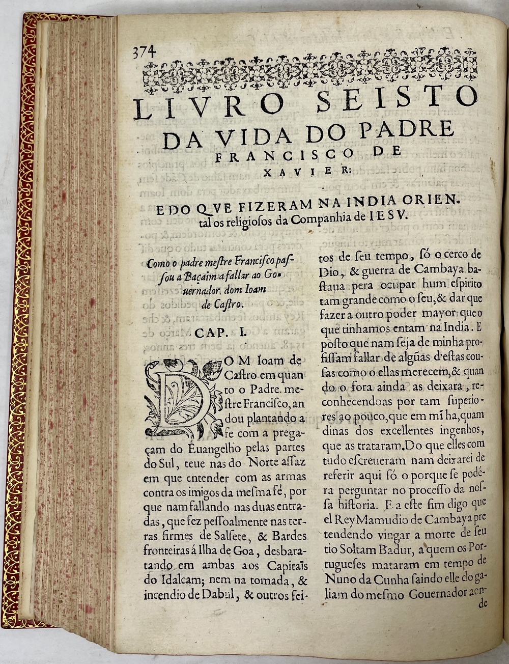 「イエズス会士であり、文筆家でもあるジョアン・デ・ルセナの代表作。ザビエルの人柄や行い、他のイエズス会士のこと、歴史や地理的な記述が見られる。イエズス会やポルトガル人がアジアに与えた影響、ゴアから日本そして中国までの地理、ヨーロッパの商人のこと、東洋の様々な宗教やカトリックの布教の可能性などについても言及している。本書はリスボンで1600年に出版された初版で、その後イタリア語版や、カスティリア語版が出版されるなど様々な言語に翻訳されている。」