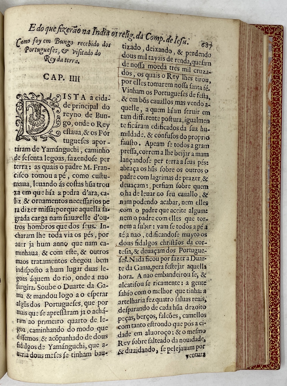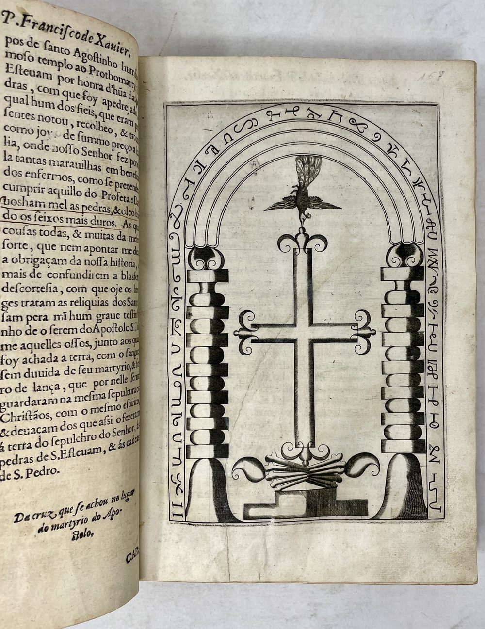 ルセナによるザビエル伝は、原著であるポルトガル語の18世紀に刊行された再版本や、1613年のイタリア語訳版が比較的よく知られており、国内でも複数の研究機関の所蔵が確認できますが、ポルトガル原著初版本については所蔵機関が相対的に限られており、上智大学、放送大学、天理図書館、東北学院大学など一部の研究機関でしかその所蔵を確認することができません。古書市場にこのポルトガル語原著初版が出現することは非常に稀で、特に本書のように装飾タイトルページと二枚のザビエルの肖像画を欠くことなく、良好な状態であるものは大変珍しく、大変貴重な現存本ということができるでしょう。