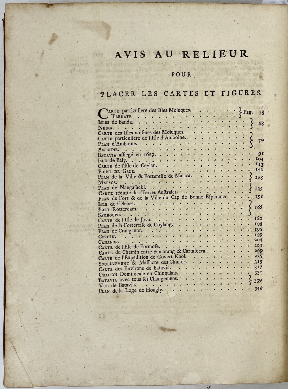 刊行当時のものと思われる製本で図版も完備しており良好な状態。小口は三方とも朱染。[NCID: BB02772209 / Landwehr VOC: 1502]