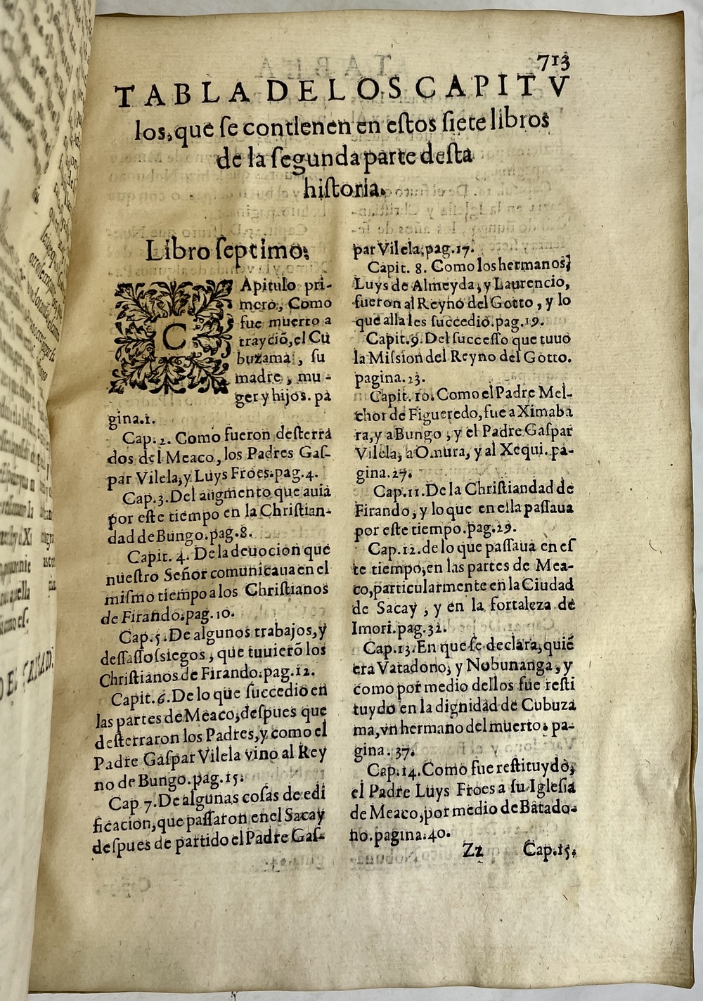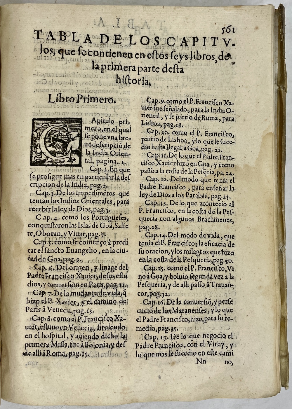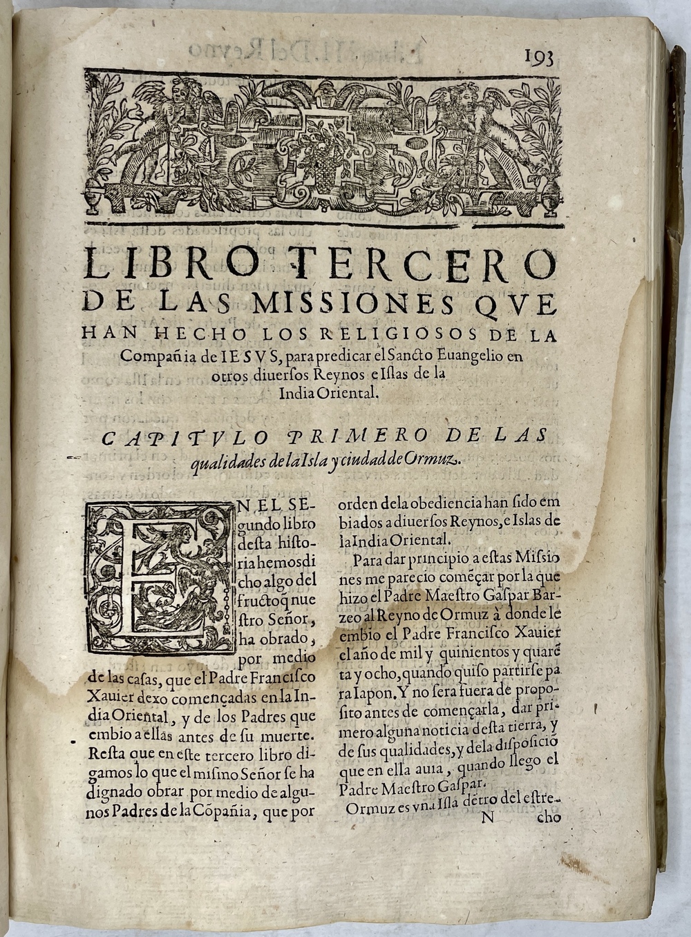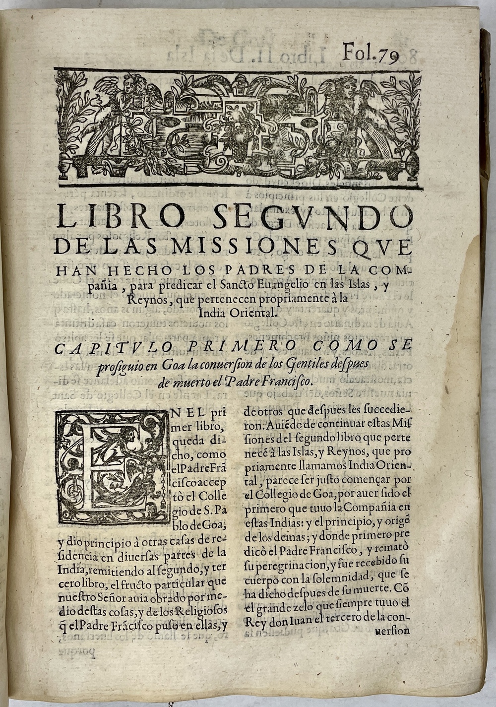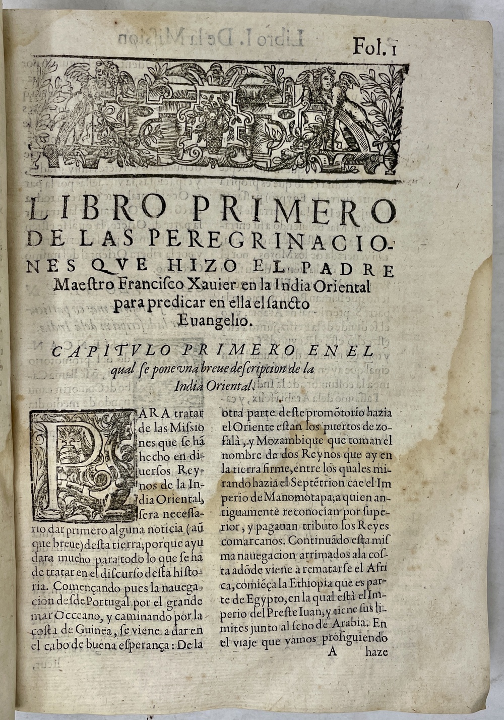 この全2巻からなる名著の第1巻は全6部で構成されていて、その冒頭である第1部は、すべてのイエズス会海外宣教の礎を築いたザビエルの伝記からはじめられています。このザビエルの伝記は全33章からなる長大なものですが、そのうち第23章から第27章にかけては、ザビエルの日本における活動を論じており、まとまった日本関係記事として読むことができる内容となっています。第2部と第3部は、「東インド」全般の宣教史を論じたもので、ここでいう「東インド」とは前掲の通りポルトガル領インド全般を指しており、エチオピアやアフリカ、ブラジルをも含む宣教史となっています。さらに第4部は、中国における宣教活動を論じる内容となっています。