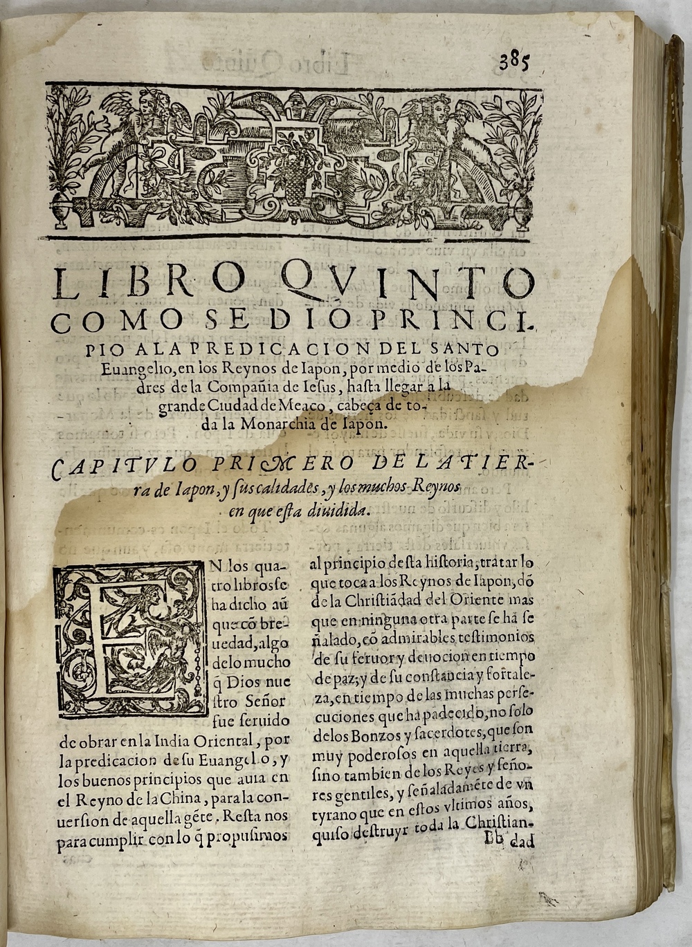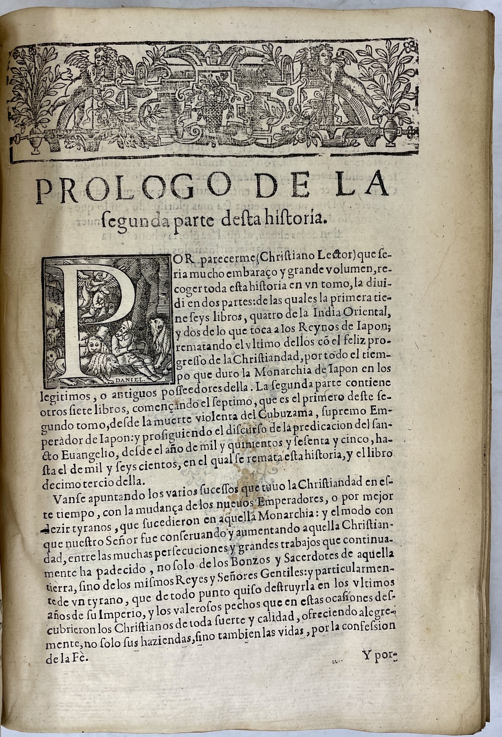 この『東方布教史』はザヴィエル以来、ほぼグスマンの同時代に至るまでの歴史を描き出しています。今日ではもはや散逸したスペインのイエズス会が保持していた資料を縦横に駆使し、他のイエズス会著作者には稀れな簡明、率直な筆致で述べていることは大きな特長といえるでしょう。「東方」とはいえ、インドや東南アジア、あるいは中国に関しては大冊二巻のほぼ四分の一を占めるに過ぎず、第一巻の後半ならびに第二巻のほとんどは日本布教史となっています。十六世紀末の日本に関して、同時代のヨーロッパが手にすることのできた知識の総合が見出される文献として著名。」