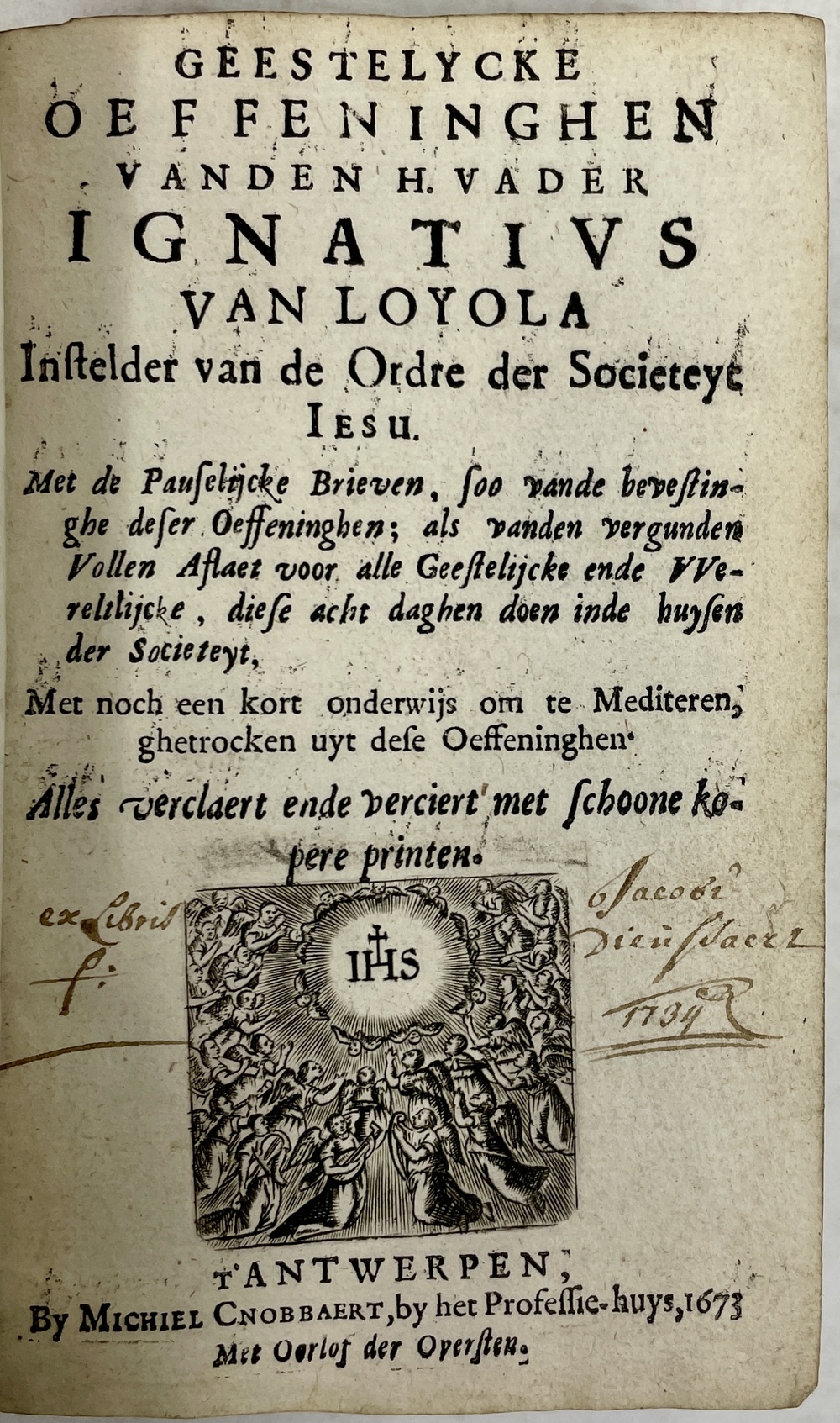 GEESTELYCKE OEFFENINGHEN VANDEN H. VADER IGNATIVS VAN LOYOLA Instelder van de Ordre der Societeyt Iesu… Alles verclaert ende verciert met schoone kopere printen.