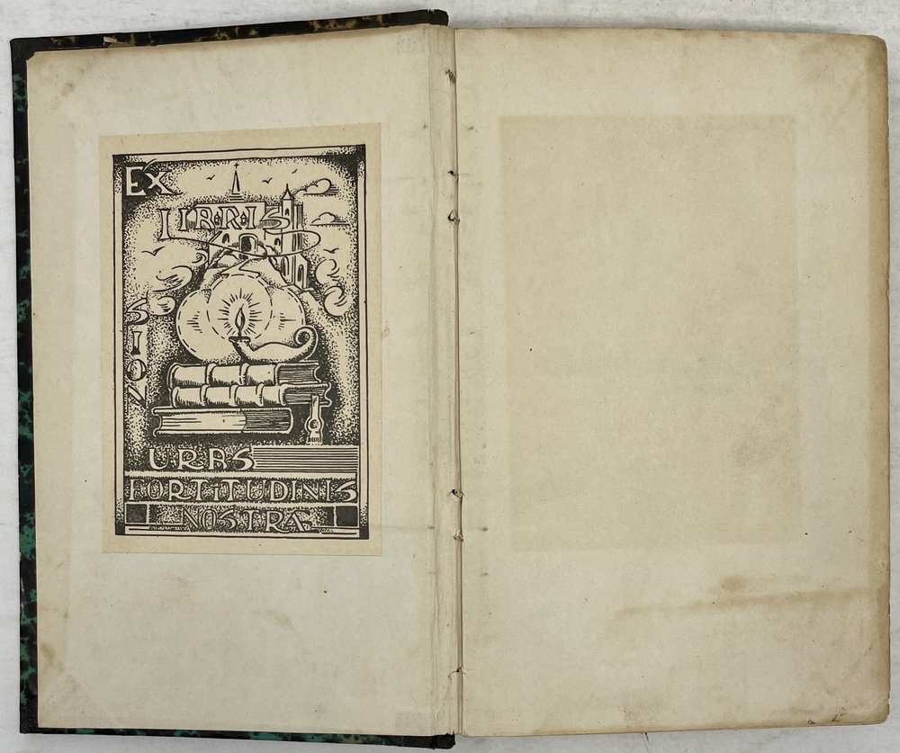 表紙に旧蔵機関による押印、見返しに旧蔵者の蔵書票の貼り付けあり。