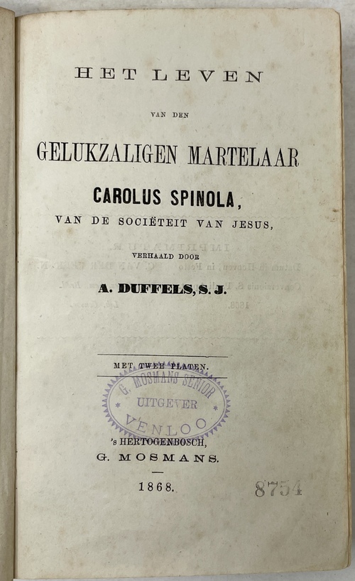 HET LEVEN VAN DEN GELUKZALIGEN MARTELAAR CAROLUS SPINOLA, VAN DE SOCIËTEIT VAN JESUS,...MET TWEE PLATEN.