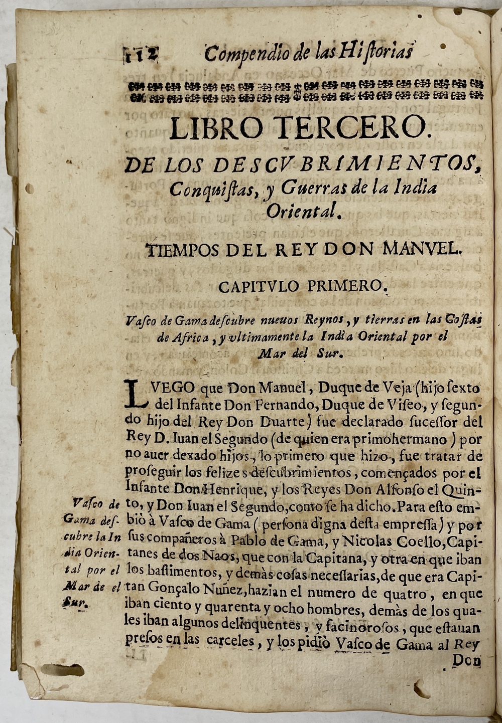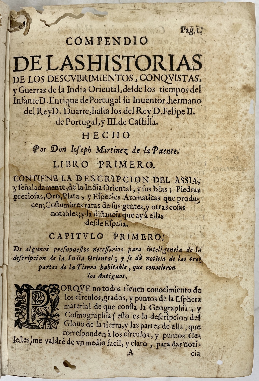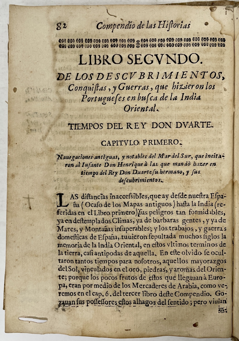 COMPENDIO DE LAS HISTORIAS DE LOS DESCVBRIMIENTOS, CONQVISTAS, Y GVERRAS DE LA India Oriental, y sus Islas, ...Y LA INTRODVCCION DEL COMERCIO Portugues en las Malucas, ...HECO Y AN ADIDA VNA DESCRIPCION DE LA INDIA...