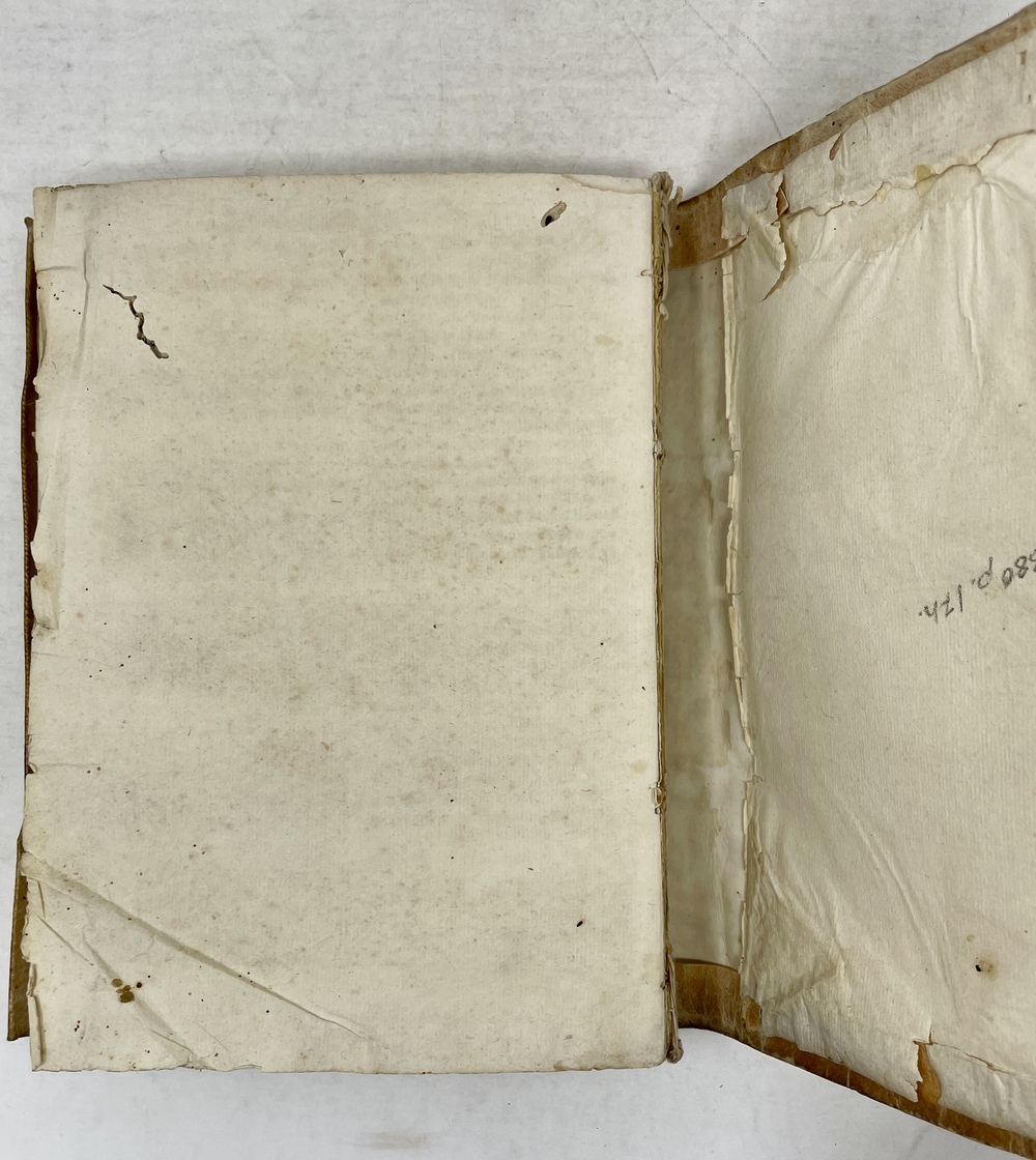 本体が表紙から外れてしまっている状態で一部の用紙の綴じに緩み、外れあり。余白部分に多数のしみや虫損あるもテキストの判読には大きな支障なし。