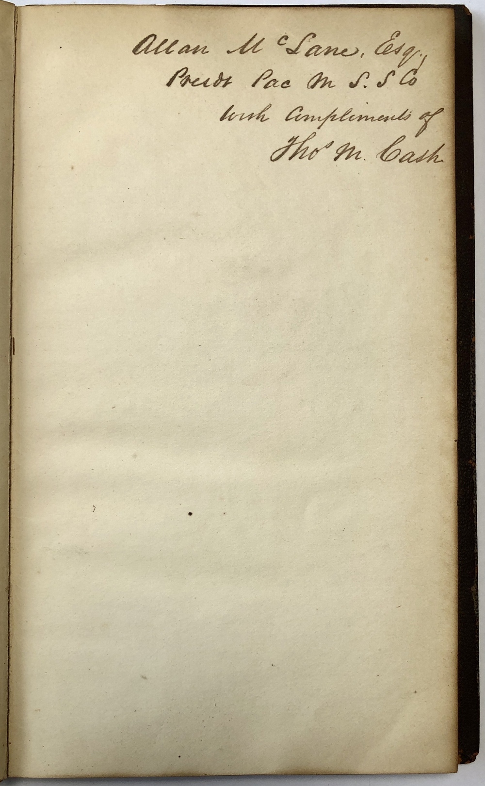 Author’s dedication copy to Allan McLane, the president of the Pacific Mail Steamship company at that time.