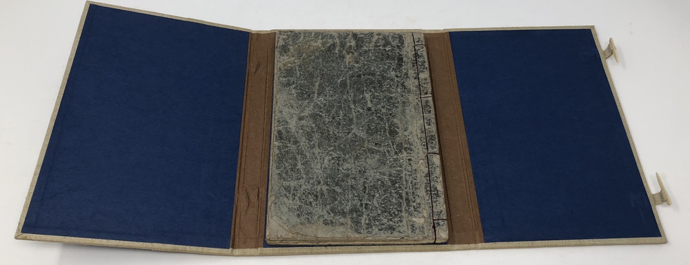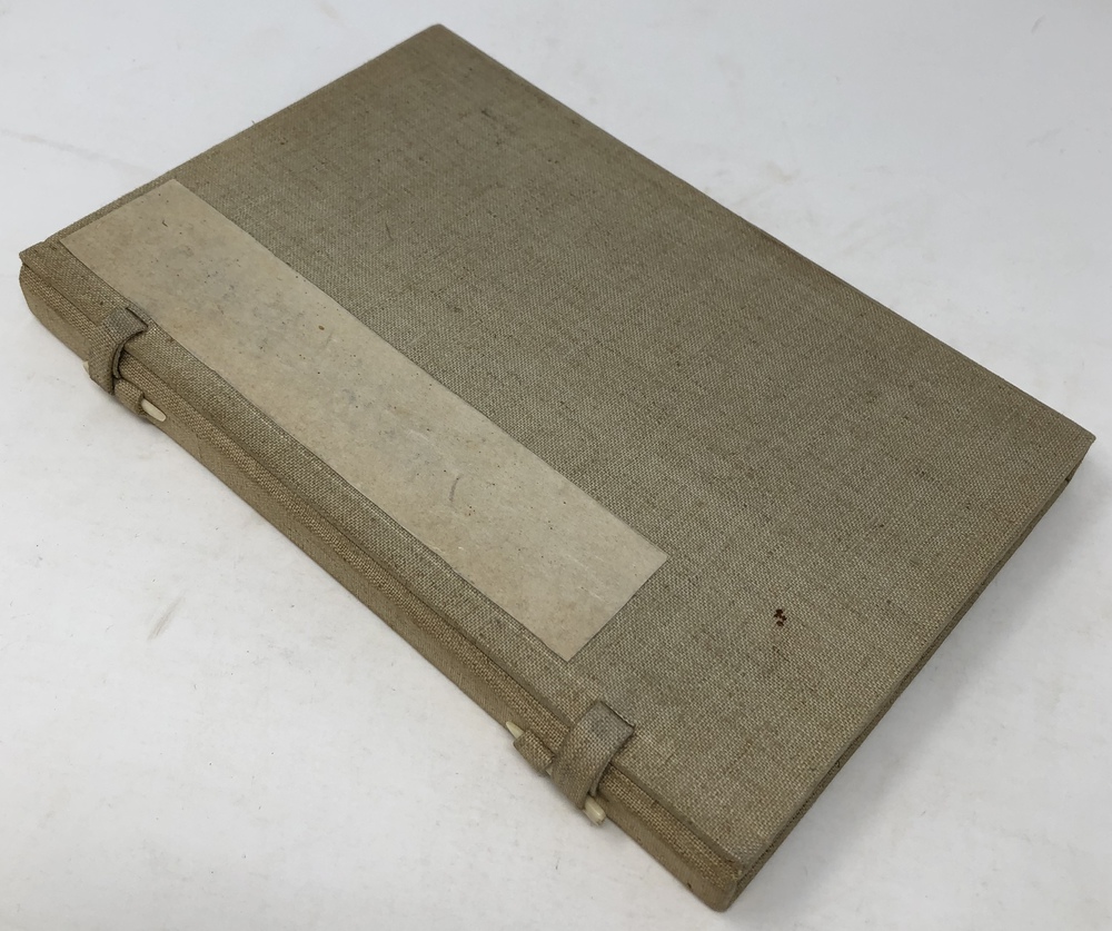 11.8 cm x 17.8 cm, 20 leaves, printed on Japanese paper, string tied, stored in a Japanese style box. 虫食いによる穴と補修跡あり。保存用の秩付き。