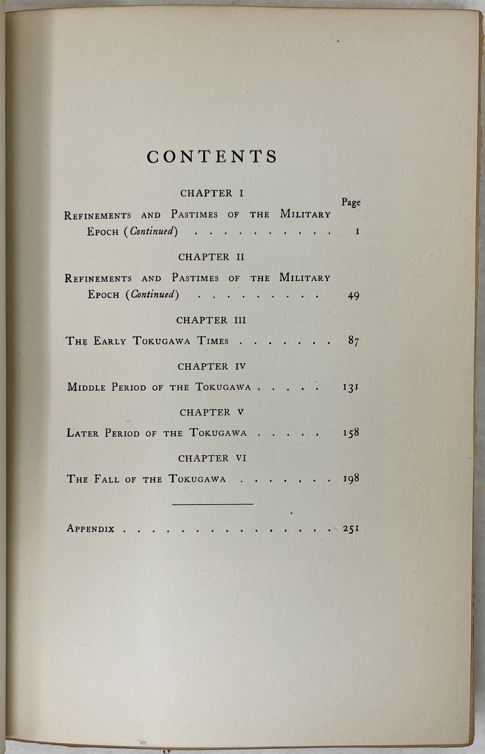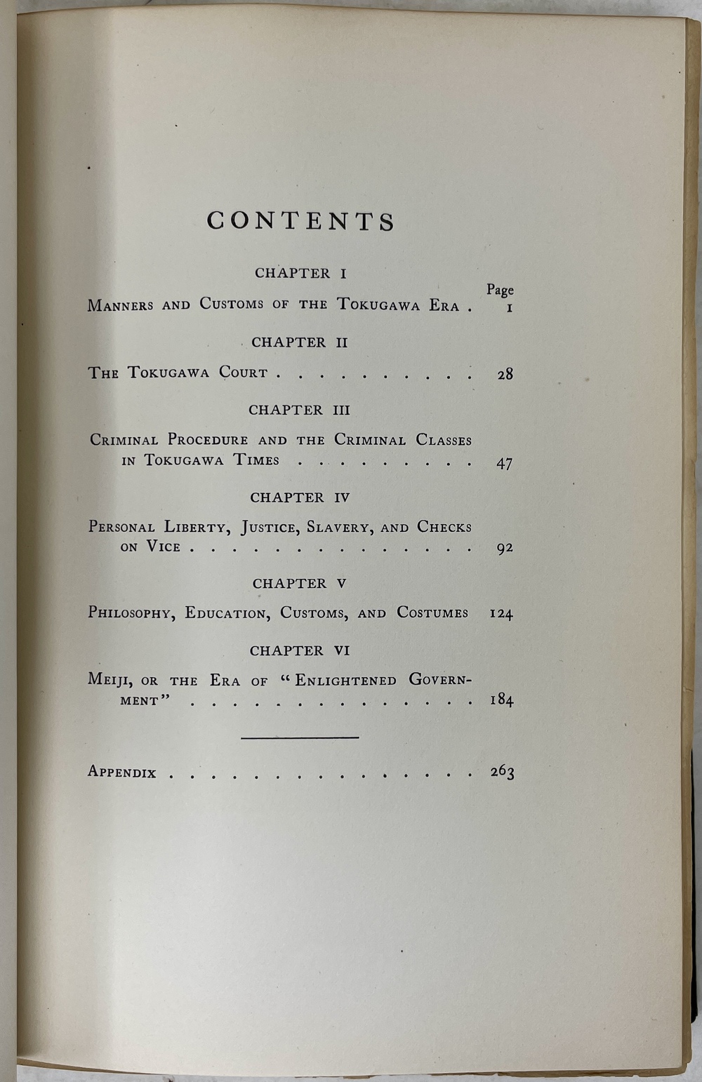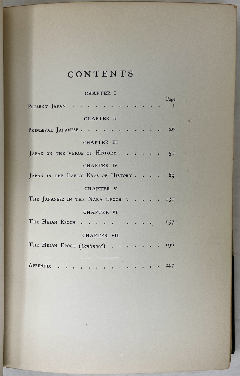 テキストの構成は、第1巻から第6巻までが、日本の政治、歴史、社会に関する考察となっており、第1巻から第3巻までで古代(神話時代)より江戸幕府の倒壊までの歴史を論じ、第4巻では江戸時代の文化や風習、社会、政治制度、教育や学問などに加えて「開明統治」(Enlightened Government)たる「明治時代」についてが論じられています。第5巻と第6巻では現代日本の政治経済状況や社会制度、対外政策の発展、商業の歴史といった日本の政治経済に関する事項が論じられるとともに天王祭や祇園祭といった日本を代表する催事や年中行事なども解説されています。第7巻と第8巻は日本の芸術論となっていて、第7巻が視覚芸術(絵画、版画)、応用芸術(彫刻等)を扱い、第8巻が当時の輸出品として西洋各国で大いに好評を博していた陶磁器についての考察に当てられているようです。前作では一部の特別版に、岡倉天心による「日本の芸術論」が収録され、さらに、1901年頃には自ら『日本の芸術論』(The art of Japan. 2 vols. Boston, J.B.Millet)を刊行しており、本書第7巻と第8巻はこれを踏まえて、ブリンクリー自らが特に自身の関心の深かった日本の芸術論を改めて展開したものと考えられます。