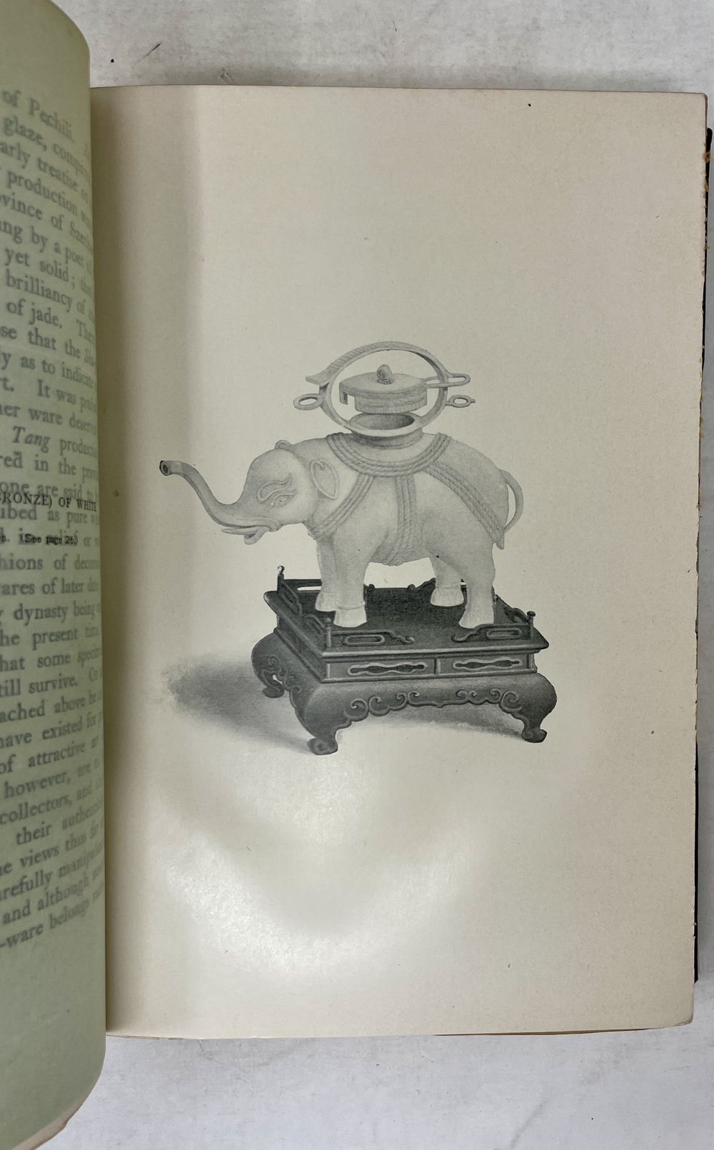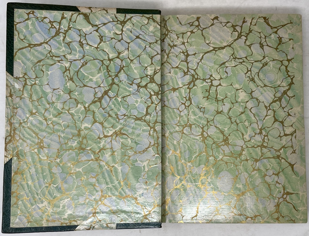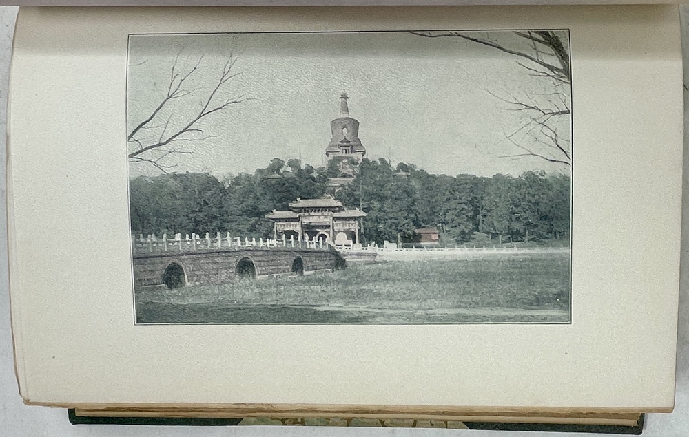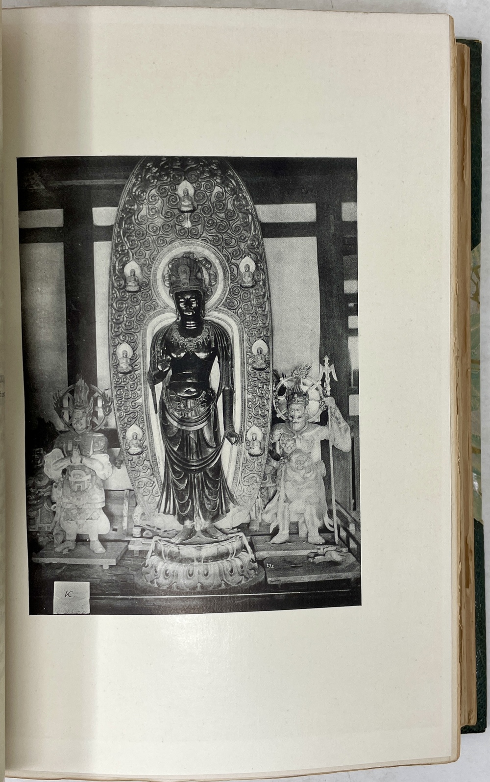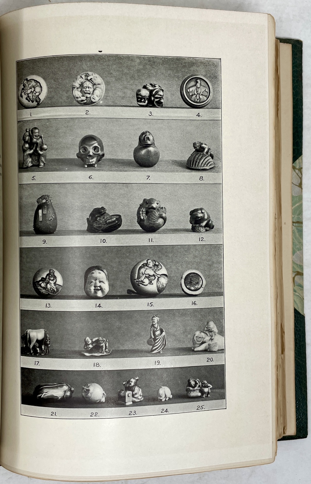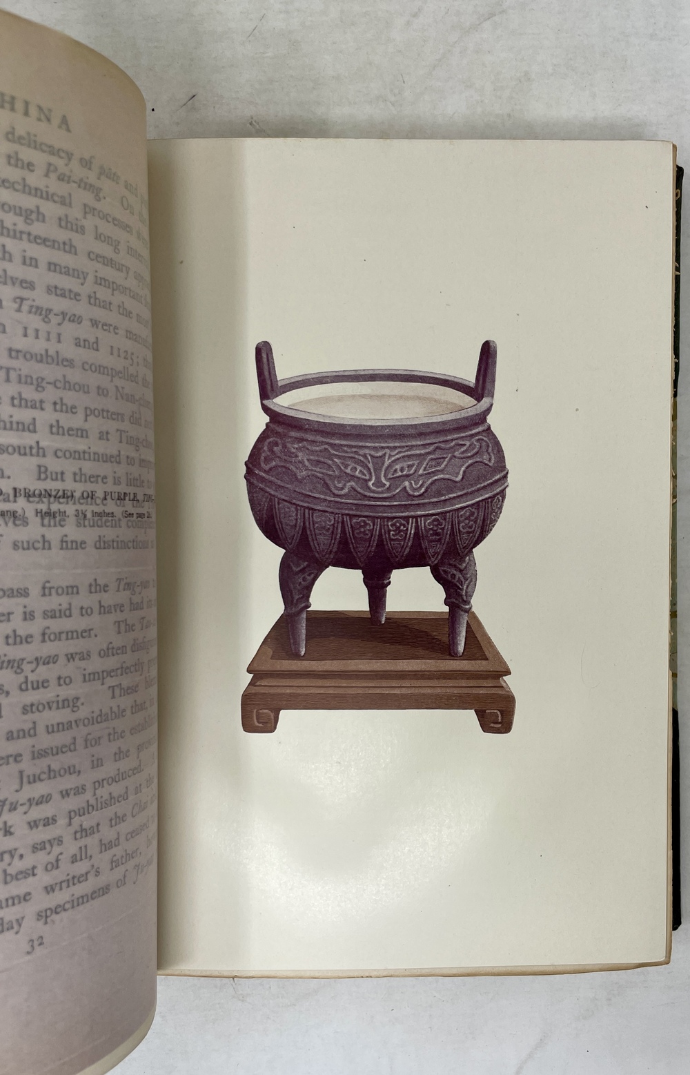 ブリンクリーによるこの著作は、1897年に刊行された大部の全10巻からなる著作『日本:日本の人々によって記され、写された』(Japan: Described and illustrated by the Japanese. 10 vols. Boston, J.B.Millet, 1897)に続くもので、同書をさらに発展させて、中国も含めた総合的な東洋論を展開しようとしたものです。同書は、「江戸版」など、数多くの特別限定版が出版されたことで知られていますが、それに続くこの作品もまた多くの特別限定版が出版されていて、本書はそのうちの、「大隈版(OKUMA EDITION)」というわずか100部のみが製作された特別版で、第56番という数字が手書きで各巻冒頭に記されています。この特別版は、各巻の冒頭口絵に彩色絹絵を設けているだけでなく、本文とは別刷で制作された、北斎の木版画の復刻版、そして現代の木版画作家による木版画作品を収録するという大変手間とコストのかかった特別な仕様となっています。また、用いられている用紙も手隙の厚手の用紙で、見返しにも特別な用紙を用いるなど、ごく少部数のみが制作された限定版に相応しい、ブリンクリーの情熱が感じられる作品となっています。本書はさらに、当時の購入者が施したものと思われる大変美しい高品質なモロッコ革と呼ばれるシボのある緑の皮革とマーブル紙を配したとても美しい装丁がなされていて、書物としての魅力を高める仕上がりとなっています。