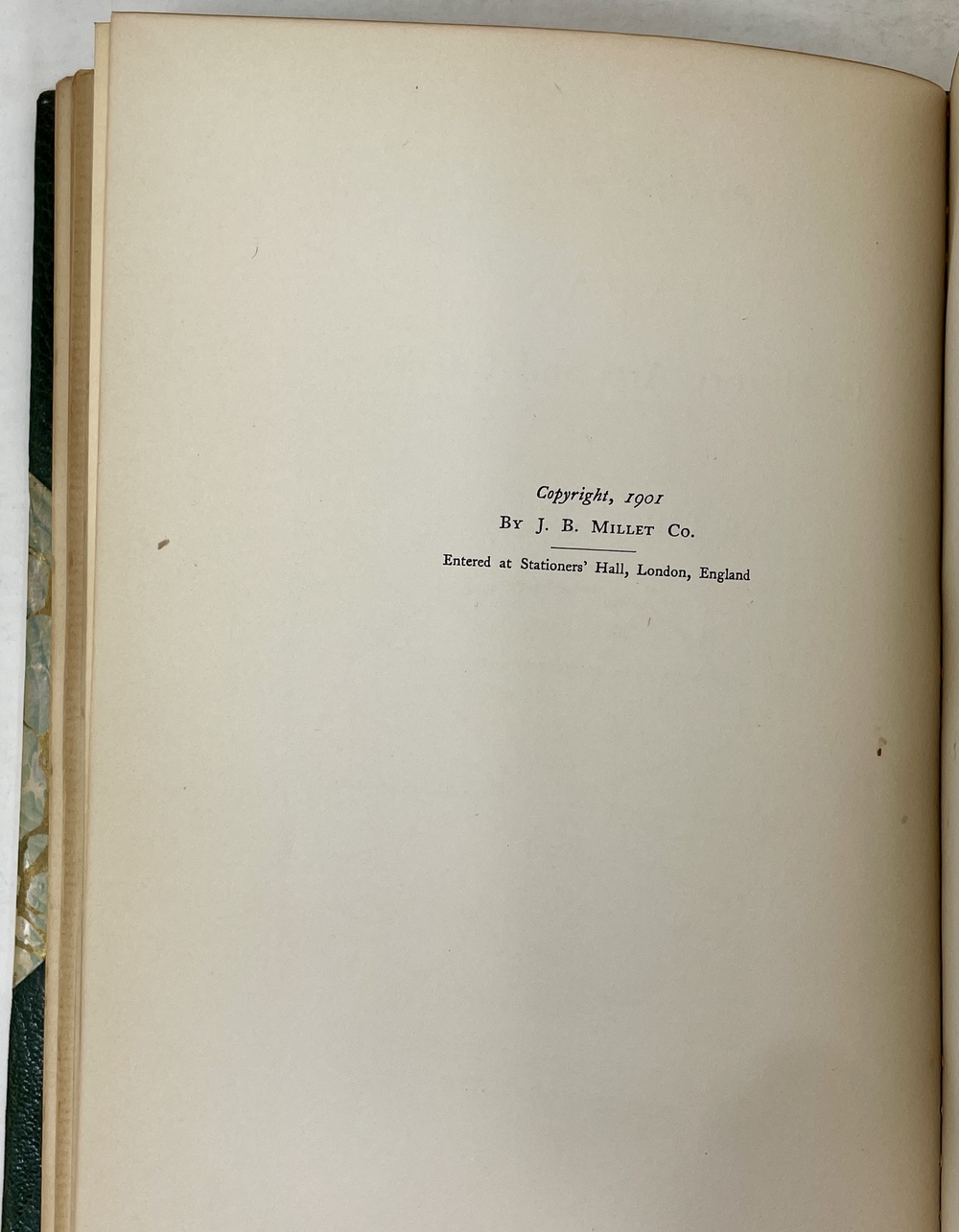 ブリンクリーは、本書も含めそれまでの著作も、ボストンの出版社J.B.Milletから出版しています。Millet (Josiah bryam. 1853 - 1938)は、1891年から1915年にかけてボストンで出版社を経営していた人物で、画家のFrancis Davis Millet(1846? - 1912) の弟として知られ、自身も著作家、編集者として数冊本を出版している他、実に多彩な分野で活躍しています。自身で出版社を立ち上げる前の、1881年から1886年にかけては、ボストンの出版社Houghton, Miffin and Companyのアート部門を担当しており、同社はのちにラフカディオ・ハーンの著作を多く刊行した出版社として知られ、ハーンの著作をはじめジャポニスムに強い影響を受けた美しい装丁を制作したSarah Wyman Whitmanが多くの作品を手掛けていて、当時の日本研究とも関係の深い出版社です。彼自身4度も来日しており、日本に対する、特に日本の芸術に対する関心は非常に強かったものと考えられます。こうしたJ.B.Milletの日本への関心の高さや、彼が有していた日本の関係者とのネットワーク、出版社がボストンにあったことを考えると、彼がフェノロサとも深い関係にあったことは容易に推察できるでしょう。その意味では、ブリンクリーはJ.B.MIlletと協力して、ボストンと日本美術を強く結びつけることに大きな貢献を成した人物としても、改めて評価されるべきとも言えるでしょう。
