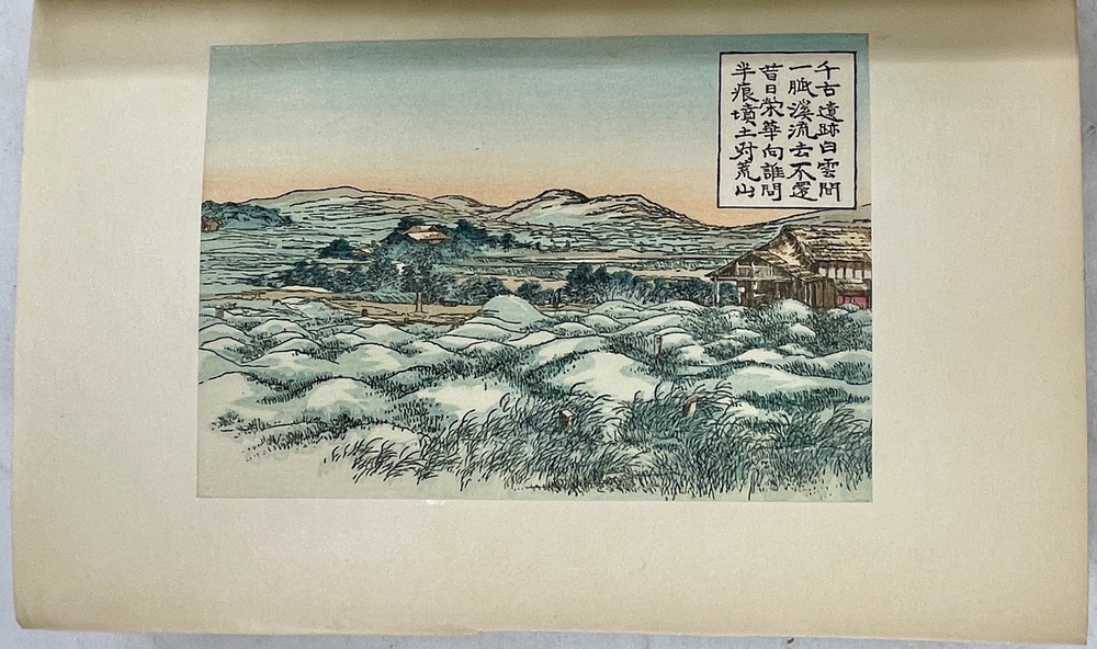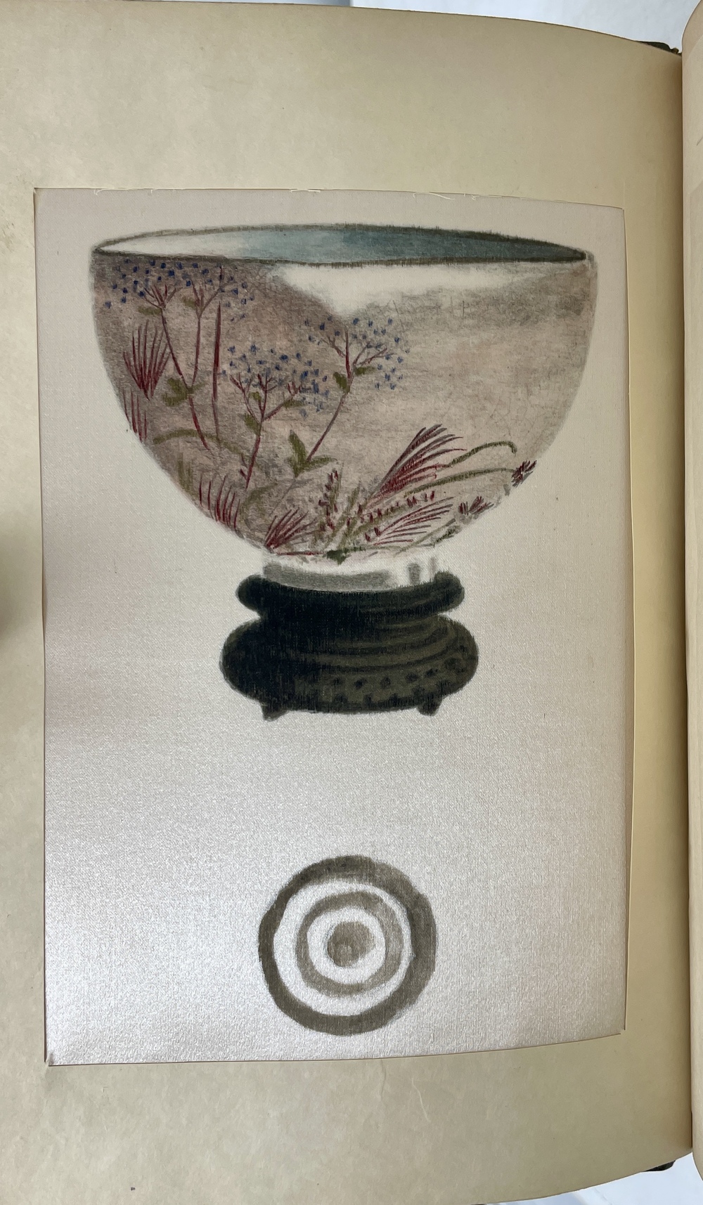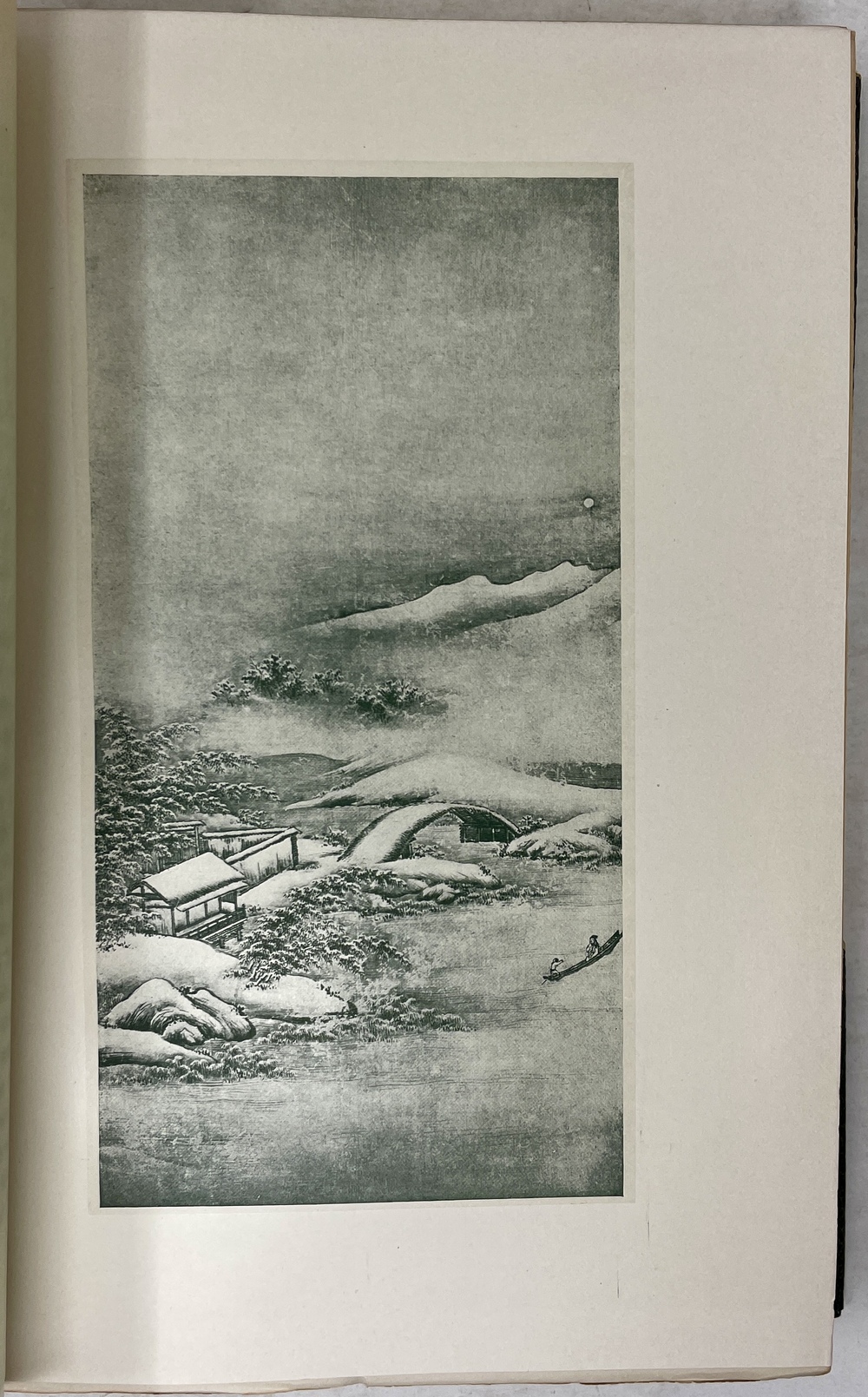 ブリンクリーの書物は、そのほとんどが限定版をうたいつつも、数多くの版を用意することで、実質的には相当な数が出版されていることから、特に英語圏における日本文化や、芸術理解の浸透や需要、関心の高まりに少なからず影響を与えたのではないかと思われます。本書のように、本当にごく一部の豪華版にのみ収録された木版画作品や絹絵は、通常の限定版よりも手にすることができる人々は限られていたと思われますが、それでも美しい書物の体裁を採って、その中に実際の木版画作品そのものを挿入して読者に届けるという斬新なアイディアは、多くの人々の関心を呼んだのではないかと推察されます。