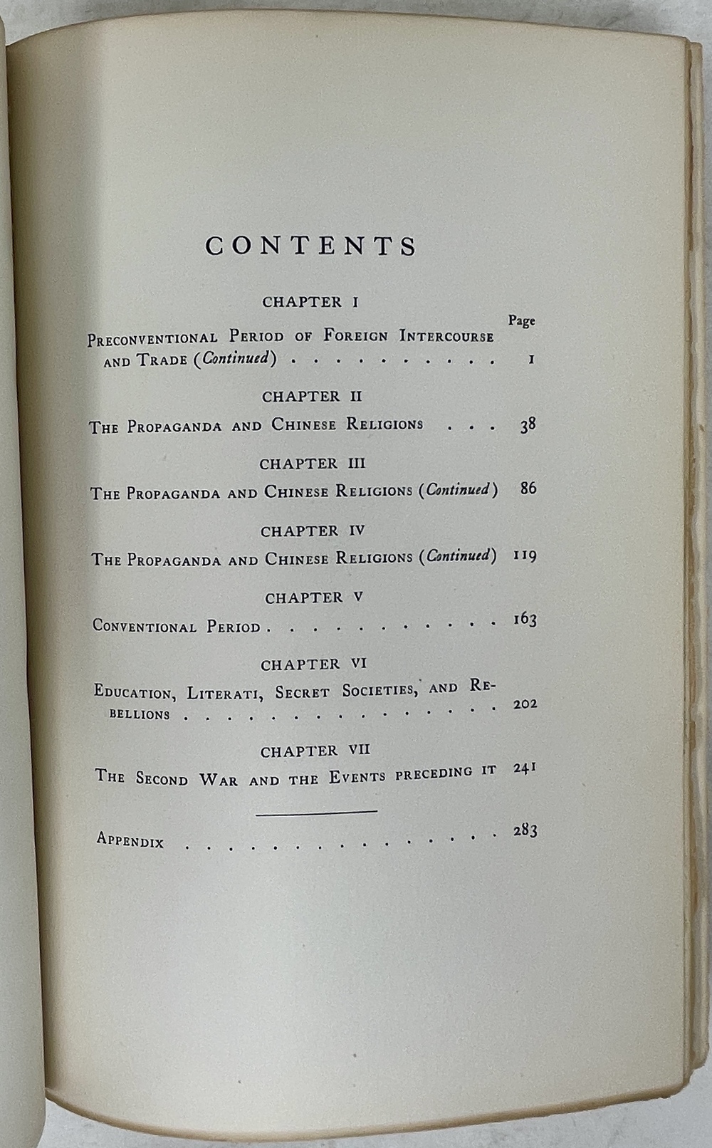 また、第9巻から第12巻までは中国編となっていて、第9巻では中国の陶磁器について、第10巻ではの中国の人々や文化の諸特徴と統治機構や財務制度、清朝以前の対外交渉史が論じられ、第11巻では中国の諸宗教とその歴史、教育や文化、社会状況と現代史が、そして最後の第12巻では、近年の広東と香港、欧米諸国との間に締結された諸条約、中国の教育制度、結語、今日の中国、といったテーマが扱われています。