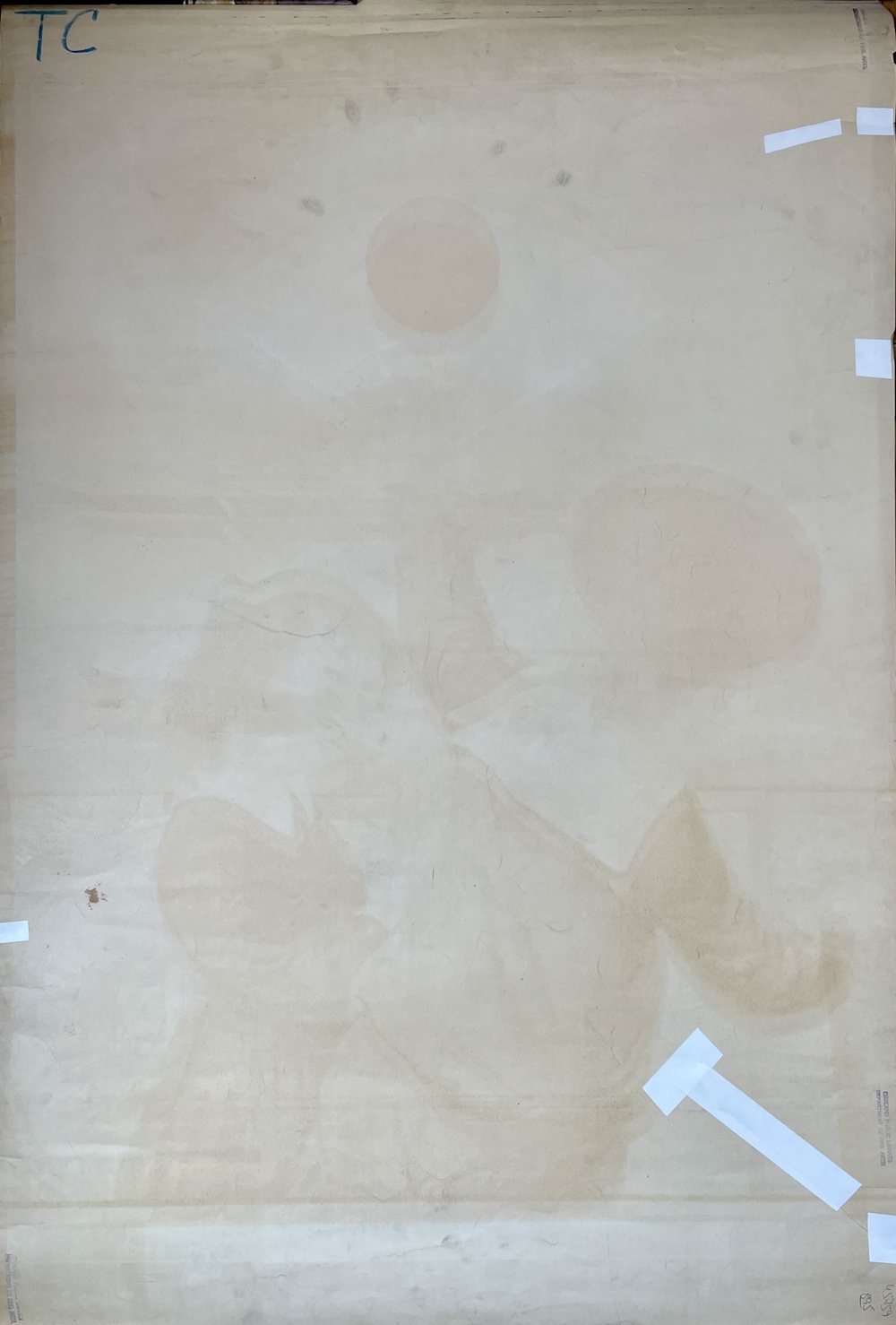 著しい褪色などもなく、良好は状態。裏面に幾つかの補修跡と「OAKLAND PUBLIC LIBRARY DEPARTMENT OF FINE, ARTS」という(かなり古い年代と思われる)押印が3箇所あり。