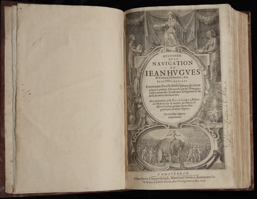 HISTOIRE DE LA NAVIGATION DE IEANHVGVES de Linschot Hollandois: Aux INDES ORIENTALES…Avec annotations de B. PALUDANUS,… Troixiesme edition augmentee.