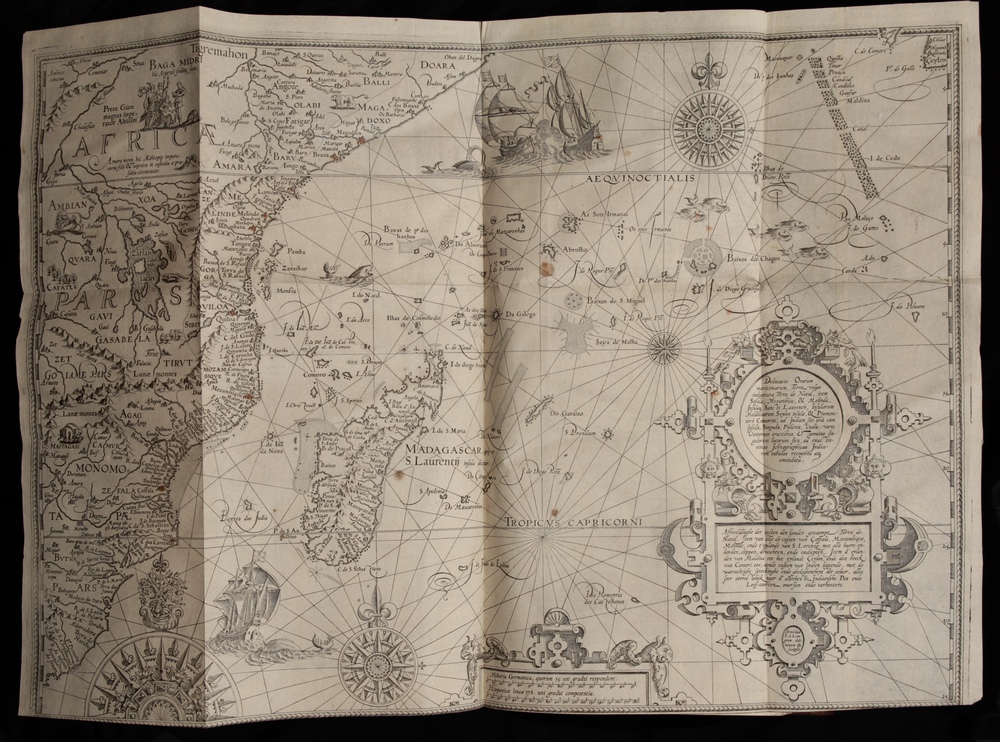 3 parts, 4 books in 1 vol. 3 engraved title pages, (Histoire); 4 unnumbered lvs., 206 pp., (Routier de Mer); 2 unnumbered lvs., 182 pp., (Description de l Amerique); 1 unnumbered lf., 86 lvs,