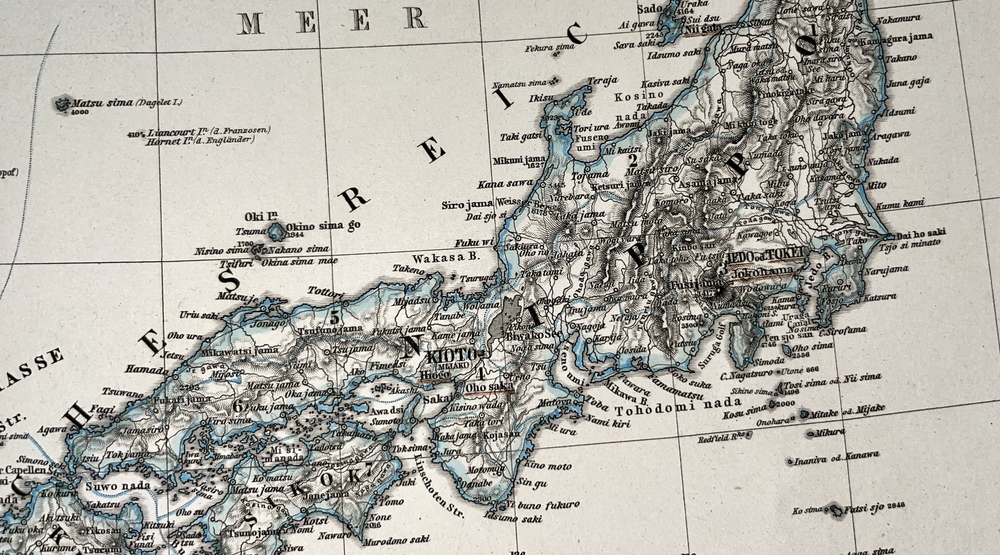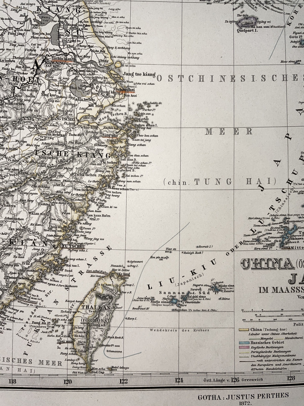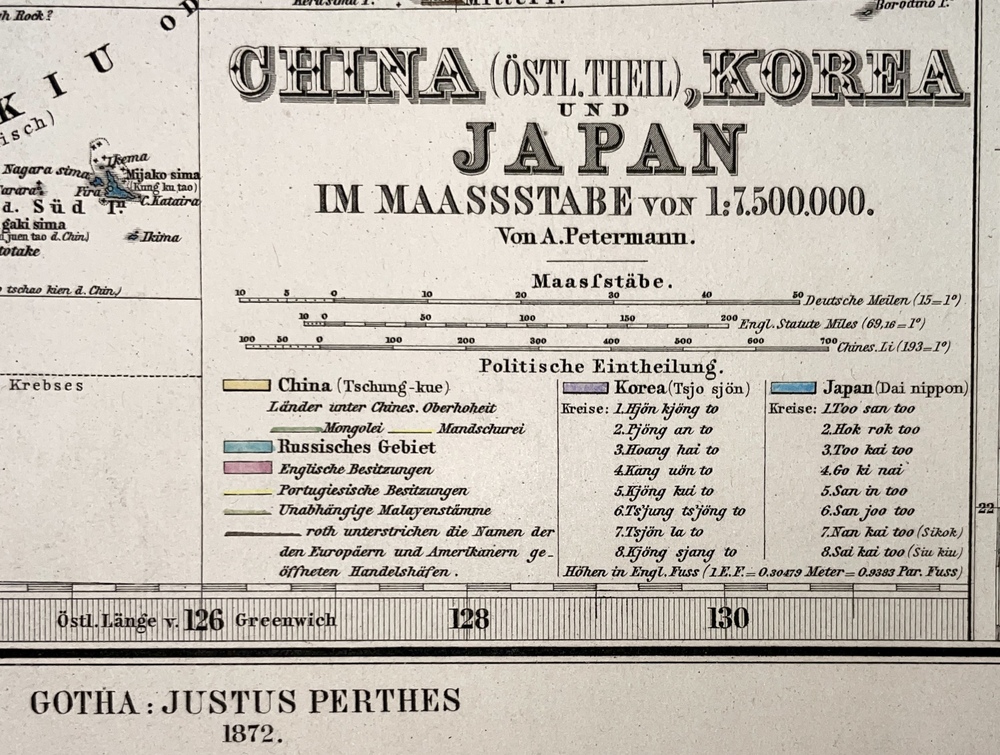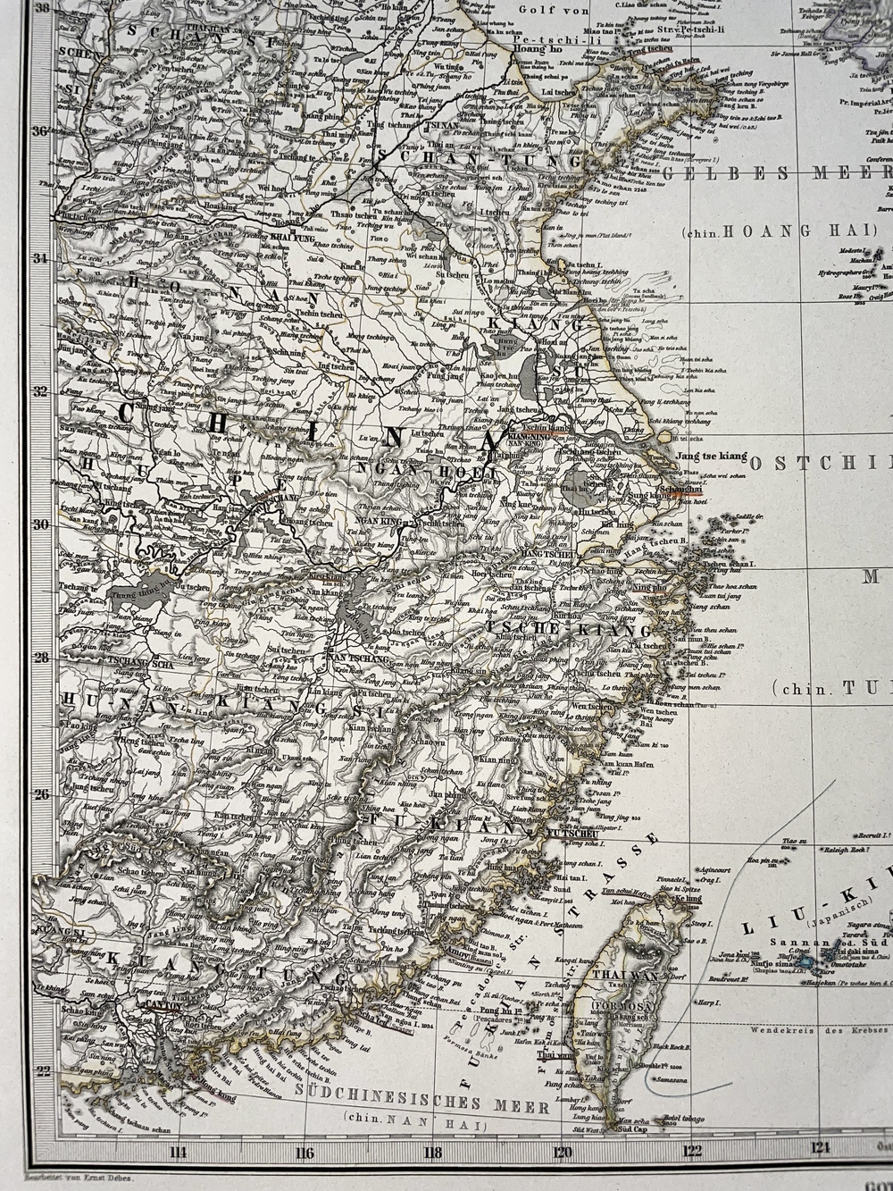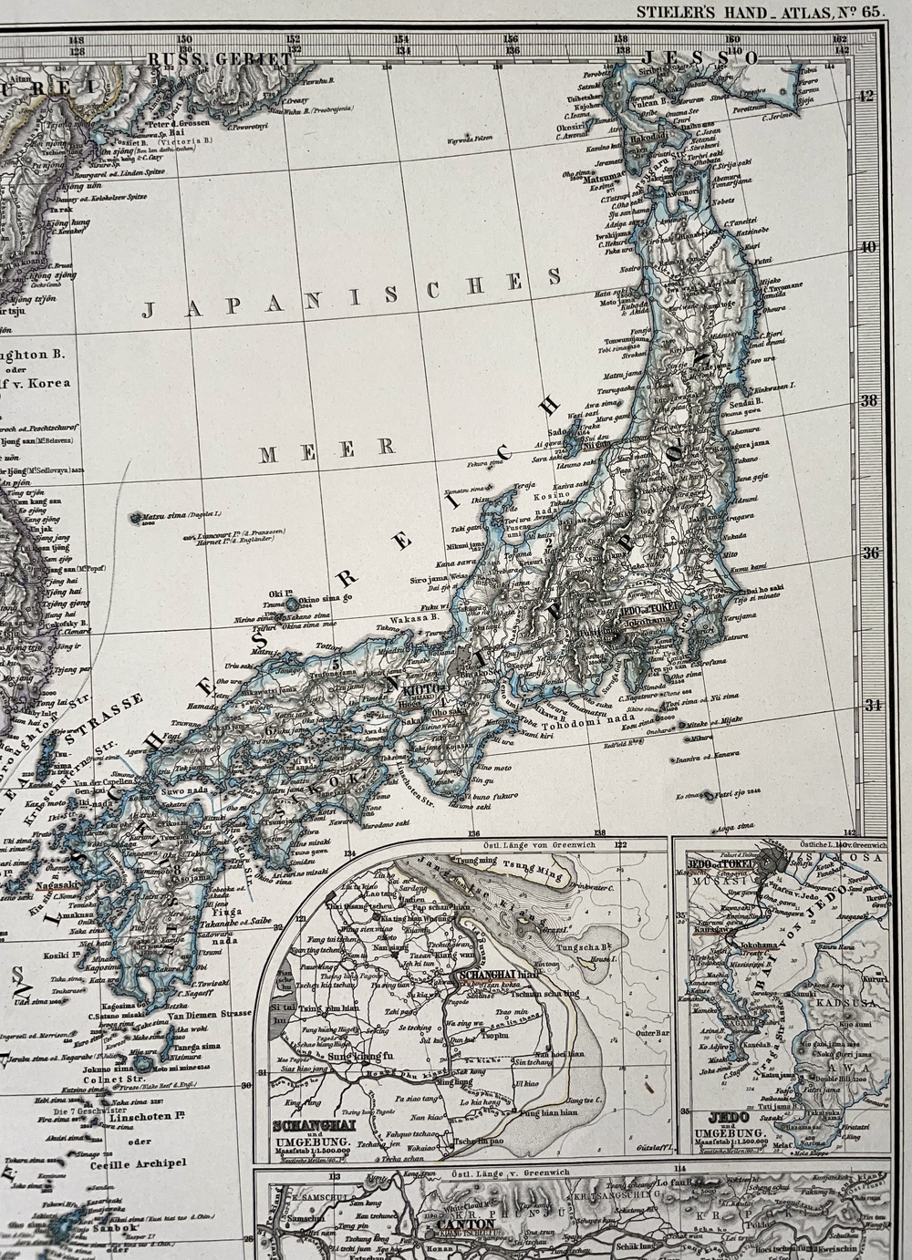 CHINA(ÖSTL. THEIL), KOREA UND JAPAN. IM MAASSSTABE VON 1:7,500,000.