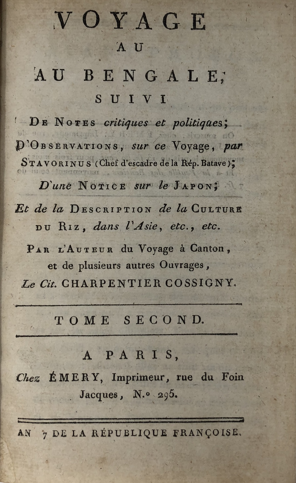 Charpentier de Cossigny, Joseph François / Stavorinus, Johan Splinter / (Titsingh, Isaac)