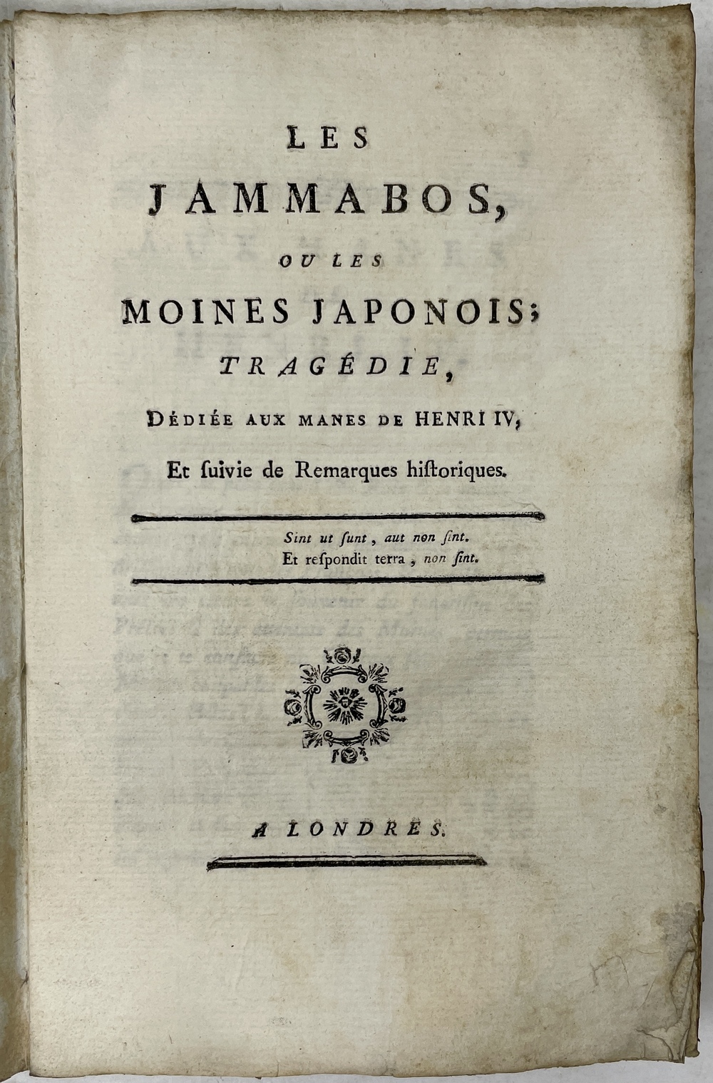 Œuvres DE M. DE FALBAIRE DE QUINGEY,…TOME PREMIER / SECOND. / LES JAMMABOS, OU LES MOINES JAPONOIS; TRAGÉDIE, DÉDIÉE AUX MANES DE HENRI IV,…