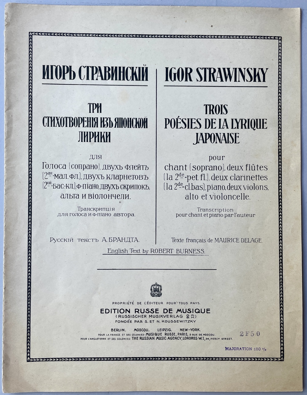 ロシア語、フランス語、英語併記 1912年 ベルリン / モスクワ刊