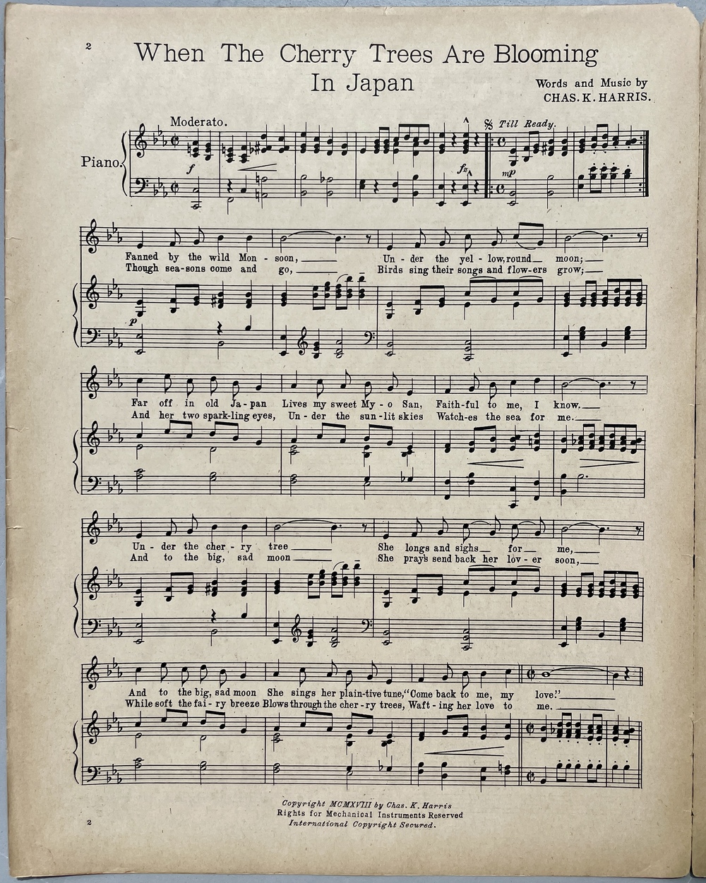 『桜の花々が日本で芽吹く季節に』(楽譜)