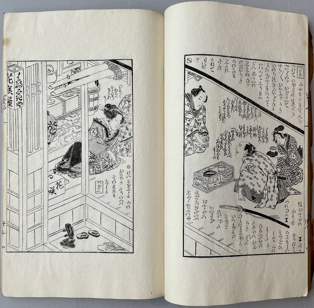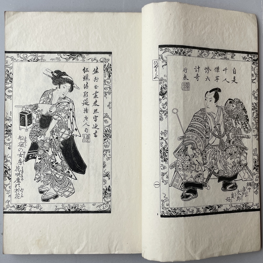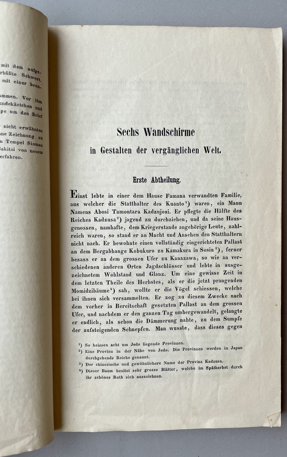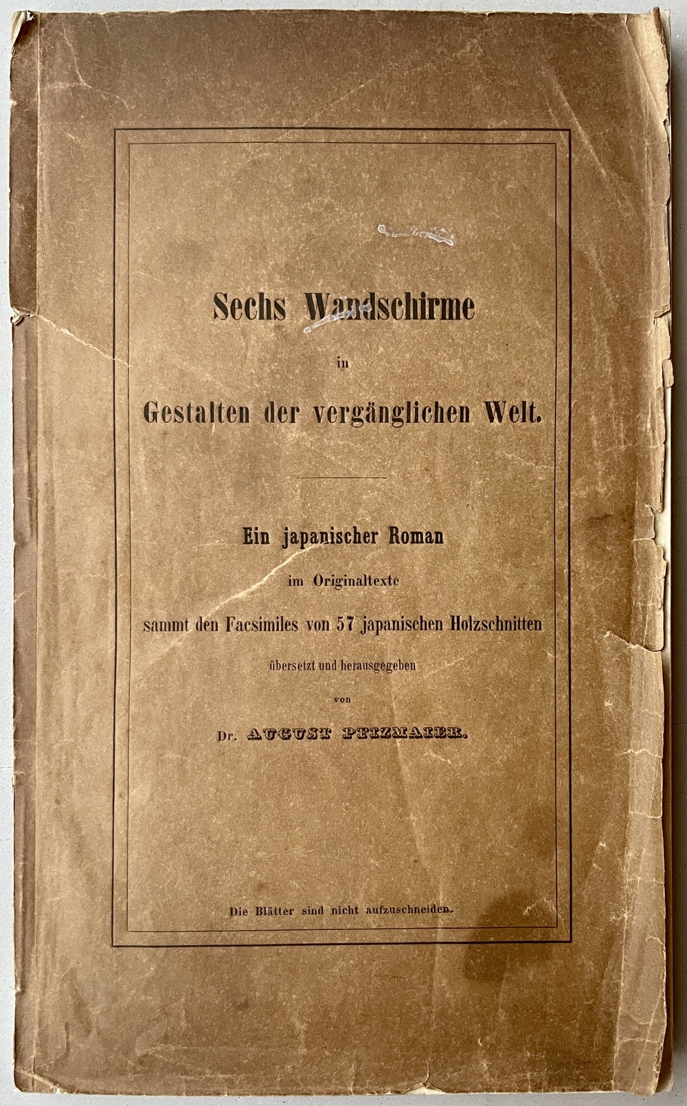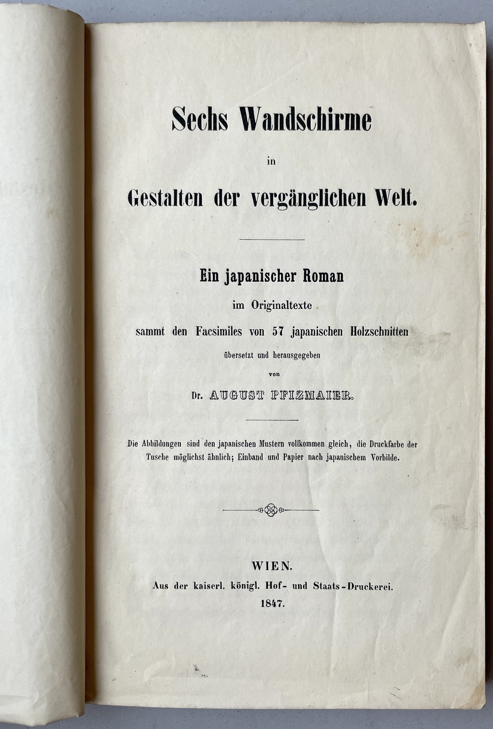 Sechs Wandschirme in Gestalten der vergänglichen Welt. Ein japanischer Roman in Originaltexte stammt den Facsimiles von 57 japanischen Holzschnitten.