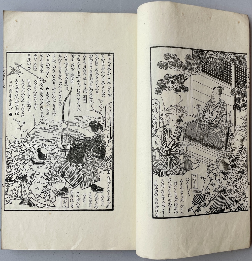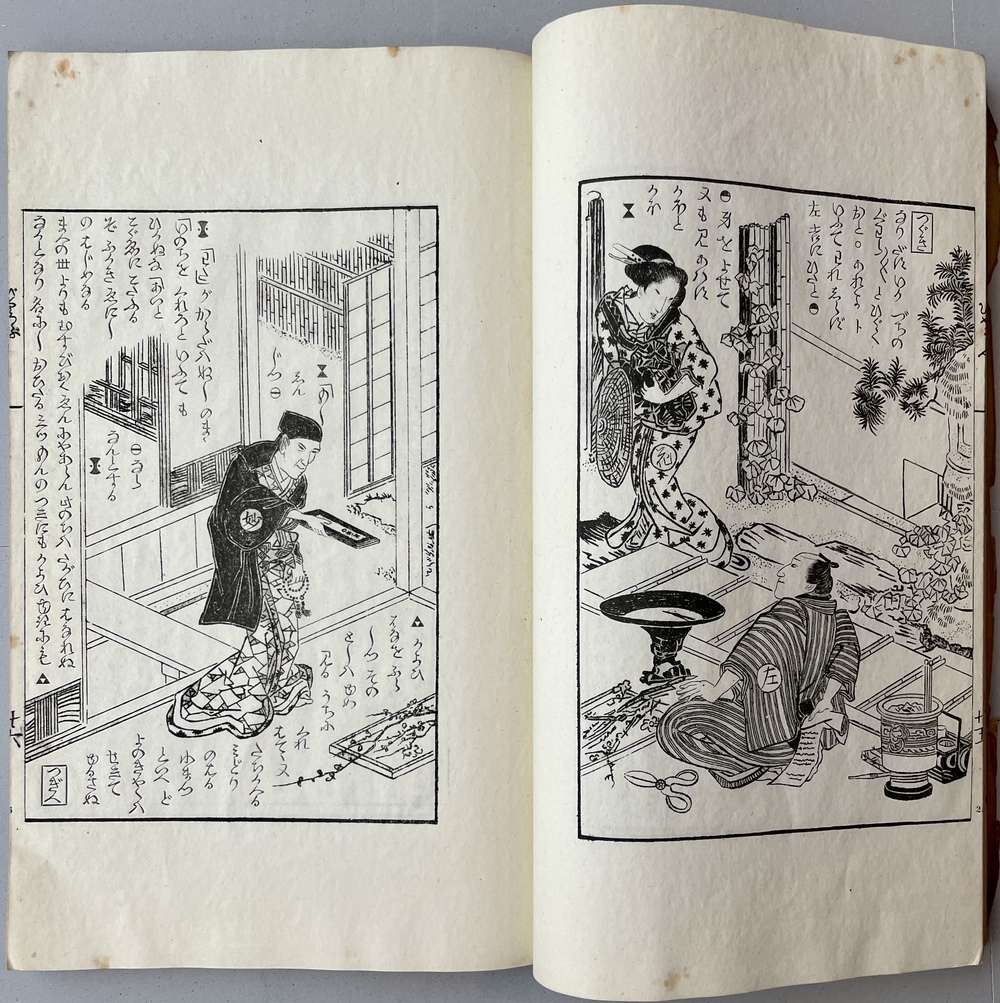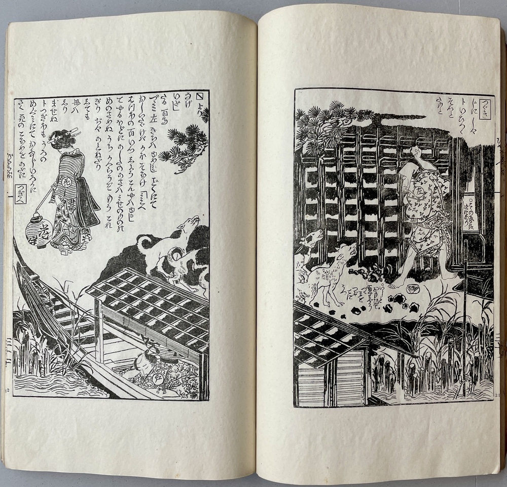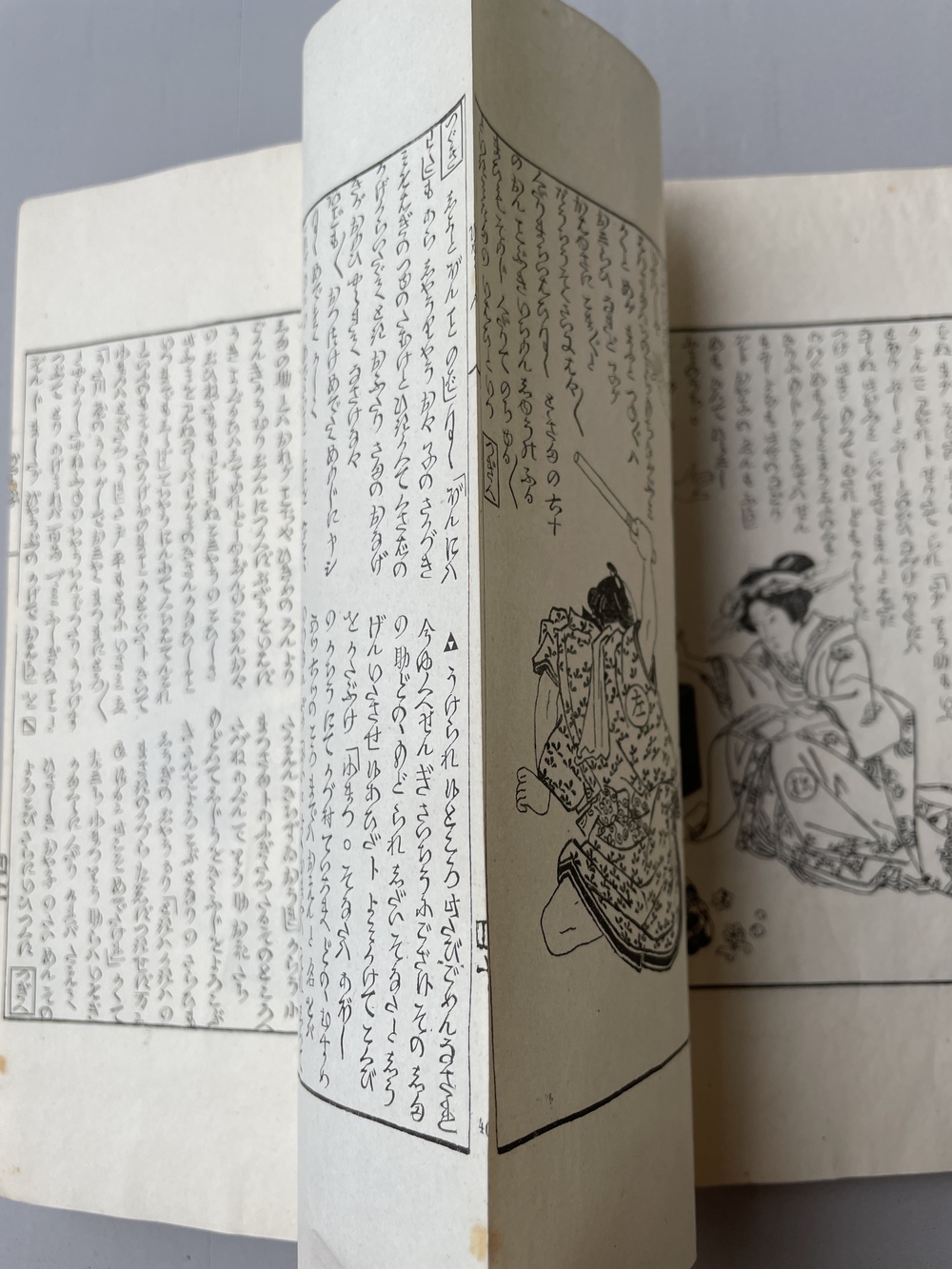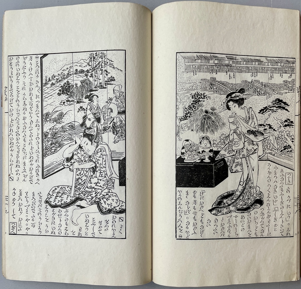 Sechs Wandschirme in Gestalten der vergänglichen Welt. Ein japanischer Roman in Originaltexte stammt den Facsimiles von 57 japanischen Holzschnitten.