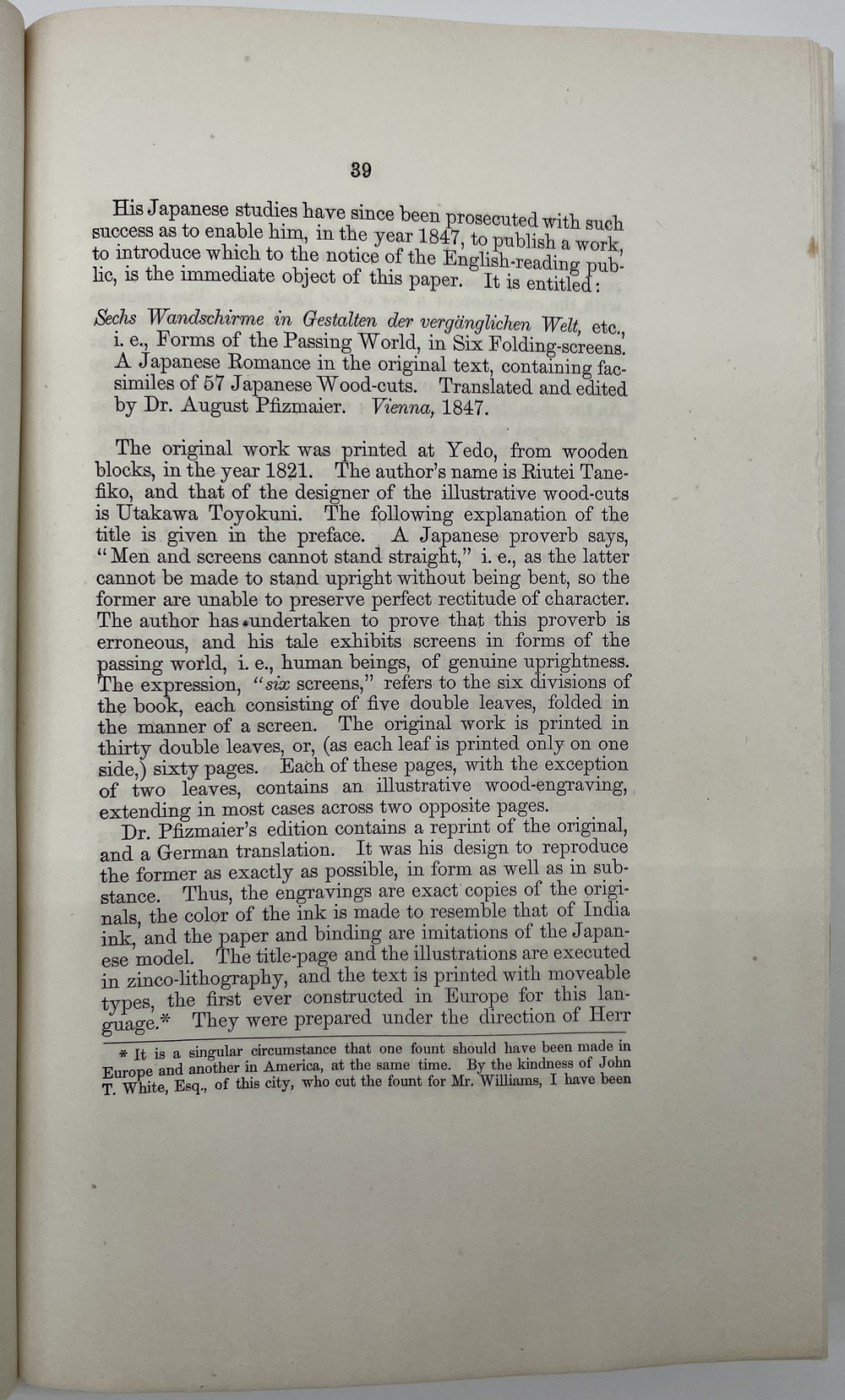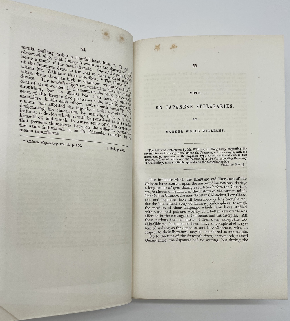 Account of a Japanese romance, with an Introduction. / Note on Japanese syllabaries…etc. [IN] JOURNAL OF THE AMERICAN ORIENTAL SOCIETY. SECOND VOLUME.