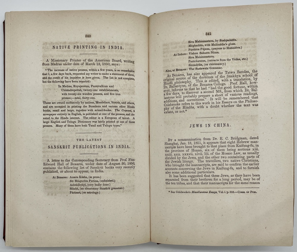 Original front cover leaf, 2 leaves (blank), pp.[i(Title.)-iii]iv-xlii, pp.[1-3], 4-52, 1 folded plate, pp.53-60, [61, 62], 1 folded map, pp.[63], 64-342, 1 leaf(ERRATA), 2 leaves(blank),