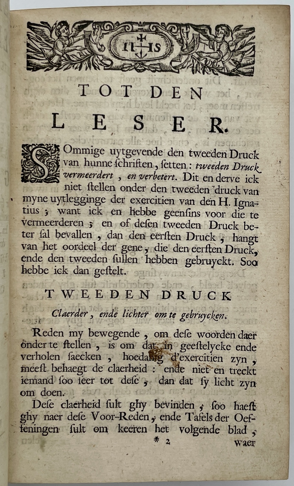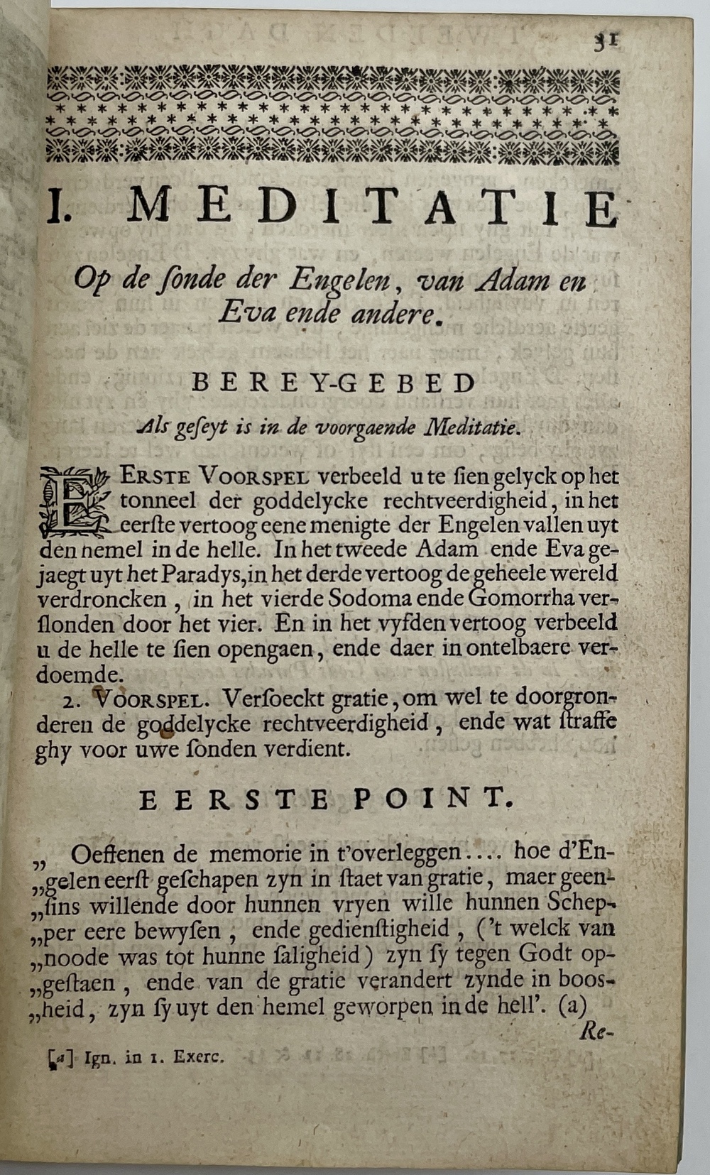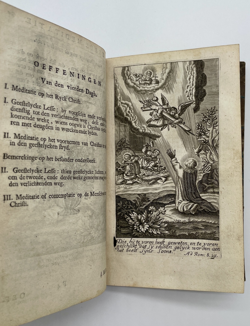 GEESTELYCKE OFFENINGEN BEHELSENDE NIET ALLEENLYCK MEDITATIEN VAN D’EXERCITIEN VAN ONSEN H. VADER IGNATIUS, Maer syne onderwysingen nopende verscheyde manieren van bidden, ende verscheyde regelen, om t’onderkennen het ingeven van den goeden, ende den quade