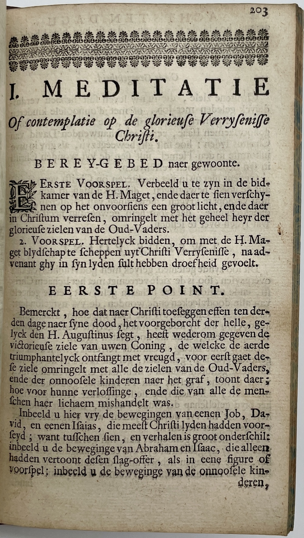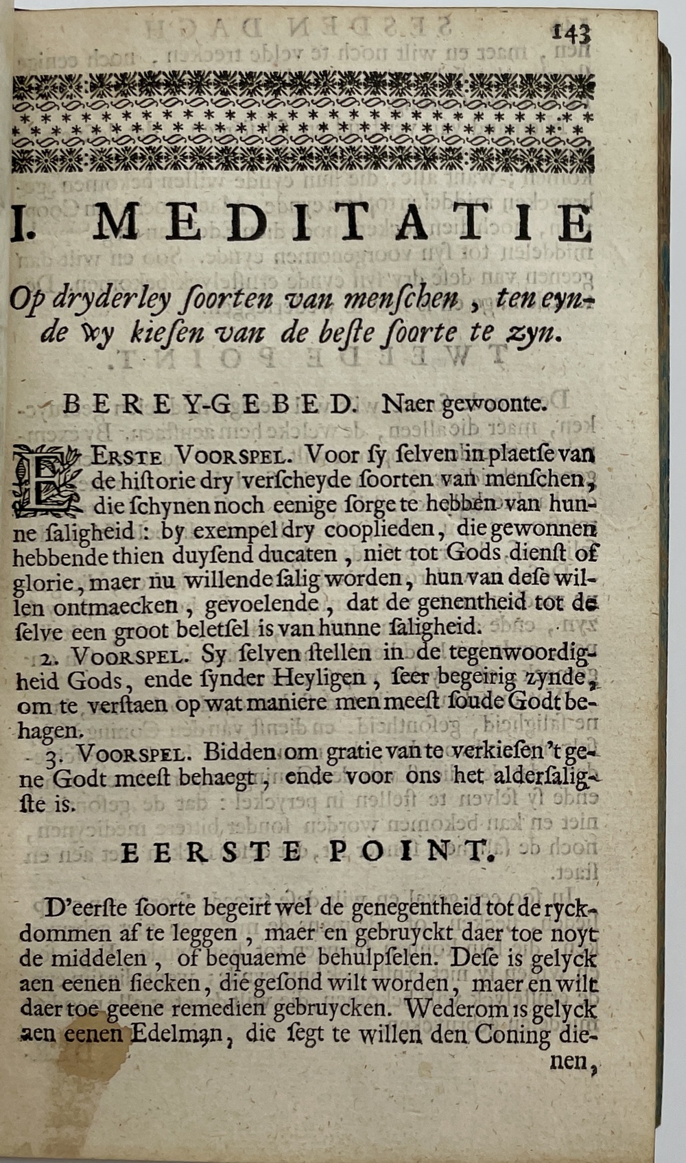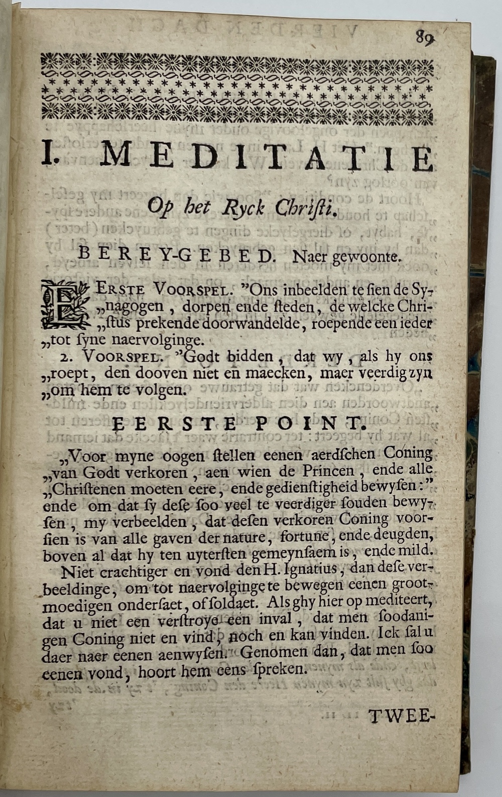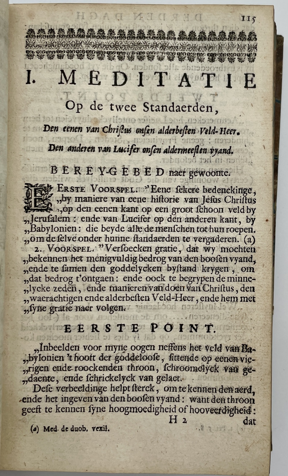 GEESTELYCKE OFFENINGEN BEHELSENDE NIET ALLEENLYCK MEDITATIEN VAN D’EXERCITIEN VAN ONSEN H. VADER IGNATIUS, Maer syne onderwysingen nopende verscheyde manieren van bidden, ende verscheyde regelen, om t’onderkennen het ingeven van den goeden, ende den quade