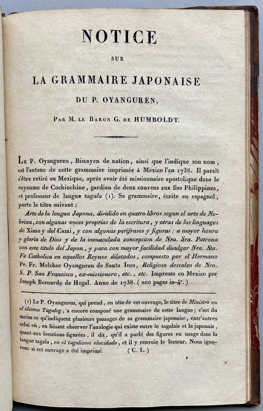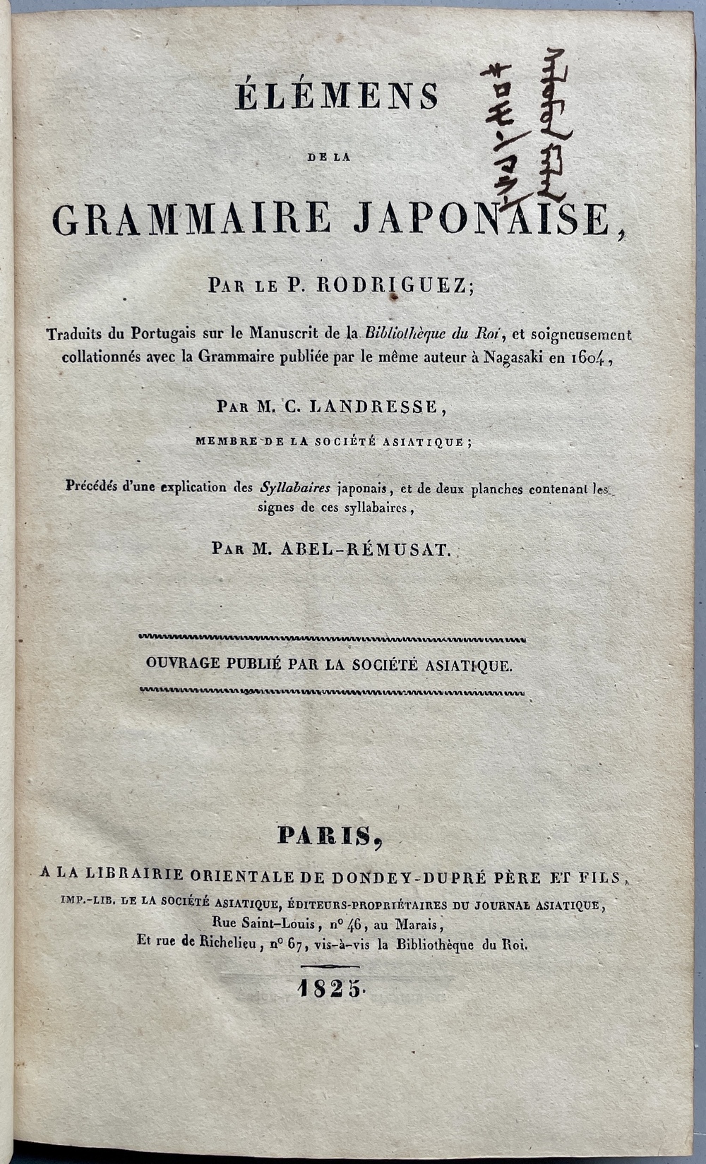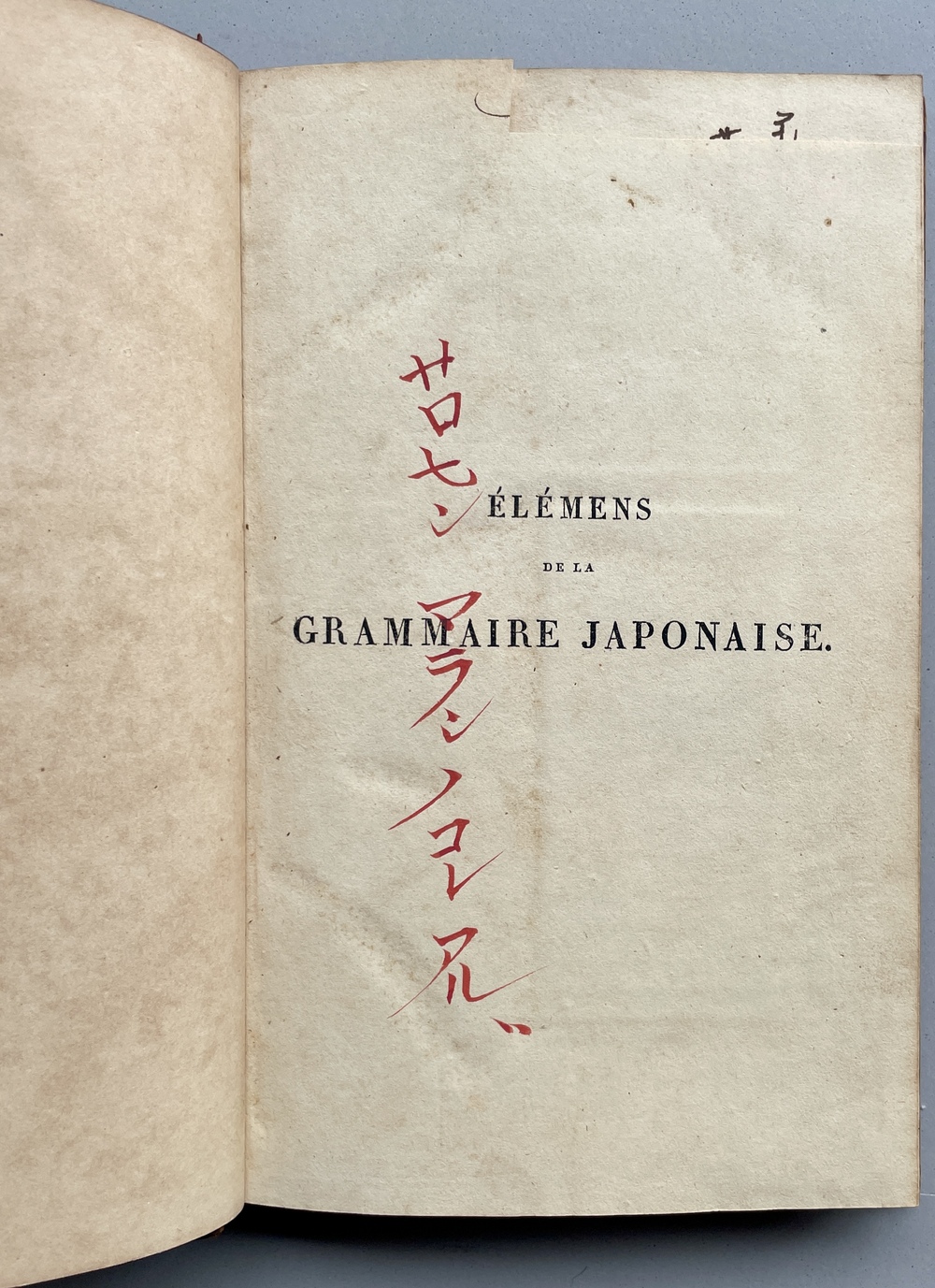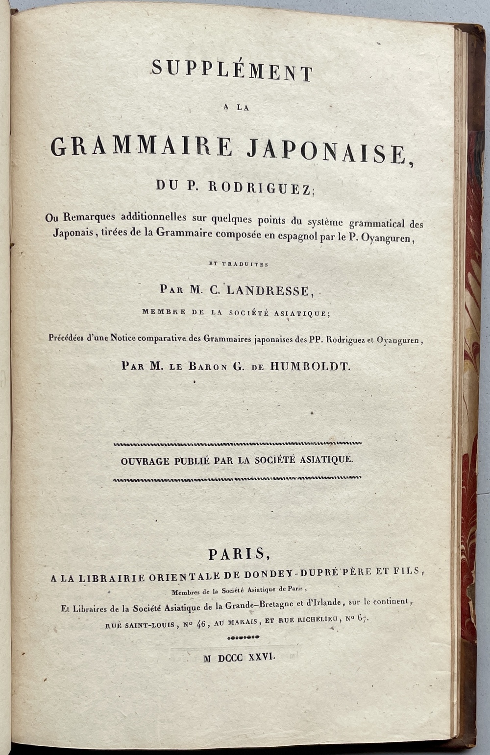 ÉLÉMENS DE LA GRAMMAIRE JAPONAISE,… [bound with] SUPPLÉMENT A LA GRAMMAIRE JAPONAISE, DU P. RODRIGUEZ;...Précédés d'une Notice comparative des Grammaires japonaises des PP. Rodriguez et Oyanguren,...OUVRAGE PUBLIÉ PAR LA SOCIÉTÉ ASIATIQUE.