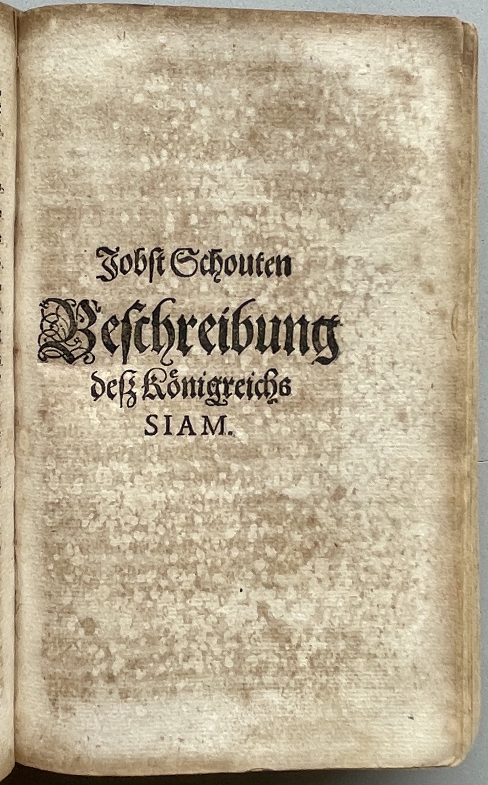 また、本書後半には、スハウテン(Joost Schouten)「シャム王国における政治、権勢、宗教、風俗、商業その他の特記すべき事項に関する記事」(707頁〜)が収録されていて、これはオランダ語原著にも収録されているシャム王国に関する情勢を報告した記事です。カロンが日本におけるオランダ東インド会社の商館長であったように、シャムにおけるオランダ東インド会社の商館長であったスハウテンが、国内情勢や貿易の見通しなどを会社に報告したもので、同時代のシャム研究においても大変重要とされている作品です。スハウテンは1632年にオランダ東インド会社の命を受けてアユタヤに商館を設立し1636年まで商館長を務めた人物で、本書ではシャムの政治、宗教、文化、商業、農業などを自身の豊富な知見に基づいて記されていて、当時のヨーロッパにおけるシャムの最新研究書として広く読まれることになりました。