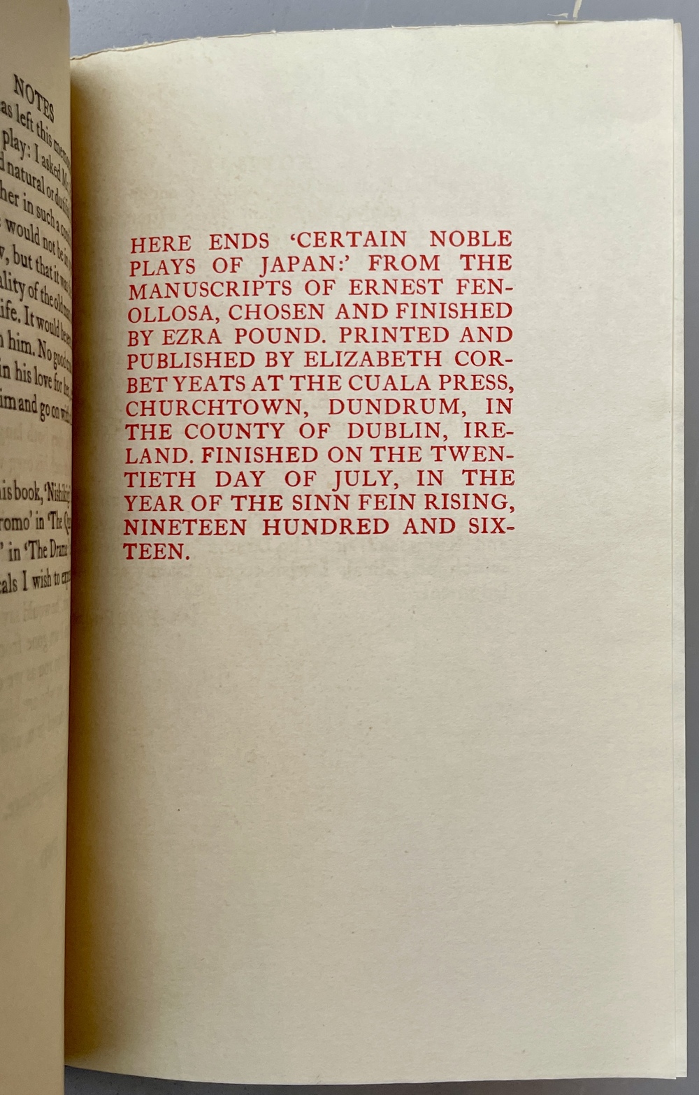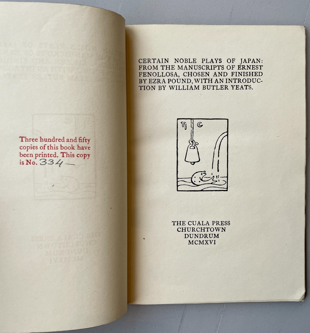 CERTAIN NOBLE PLAYS OF JAPAN: FROM THE MANUSCRIPTS OF ERNEST FENOLLOSA, CHOSEN AND FINISHED BY EZRA POUND, WITH AN INTRODUCTION BY WILLIAM BUTLER YEATS.