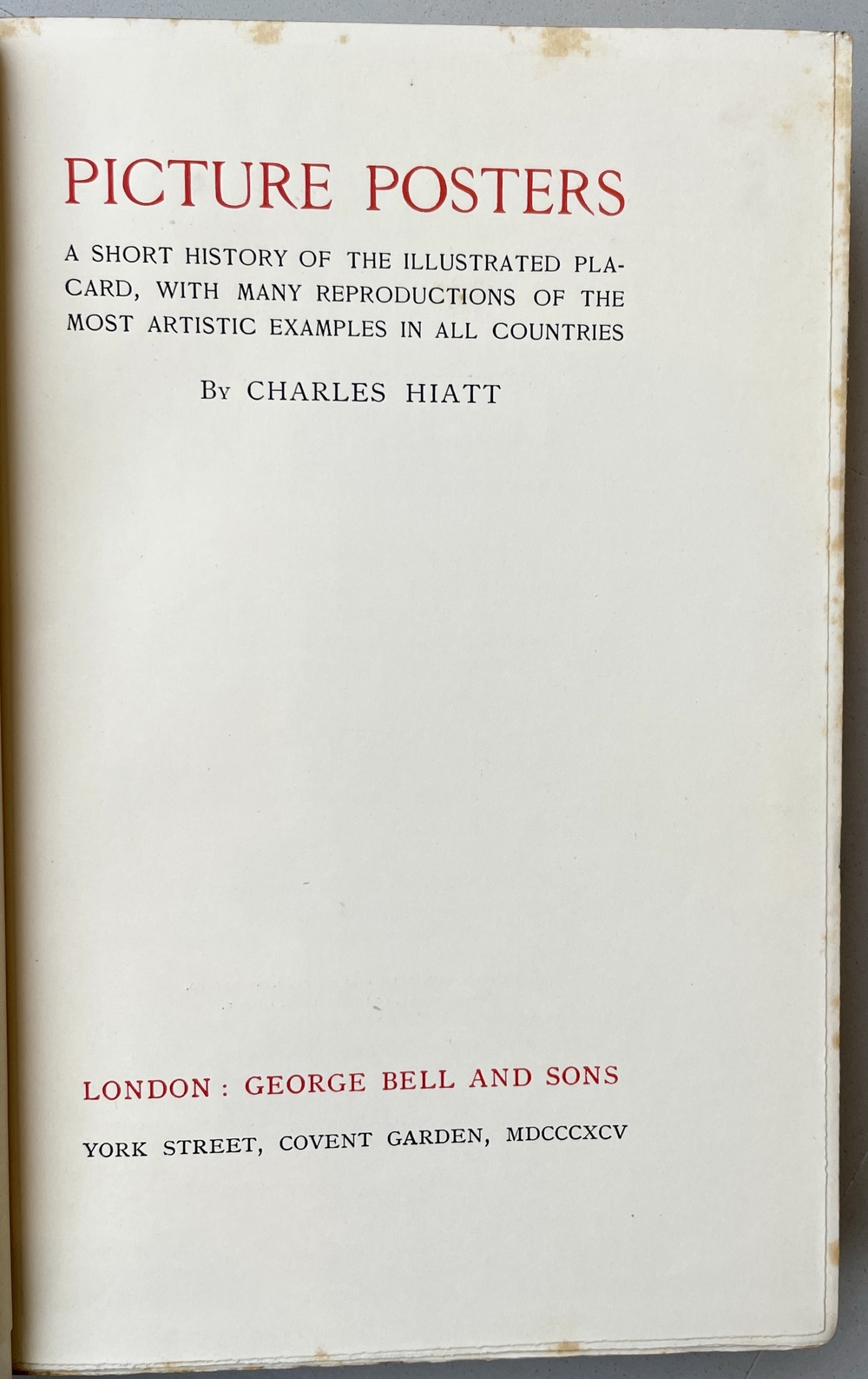 PICTURE POSTERS: A SHORT HISTORY OF THE ILLUSTRATED PLACARD, WITH MANY REPRODUCTIONS OF THE MOST ARTISTIC EXAMPLES IN ALL COUNTRIES.
