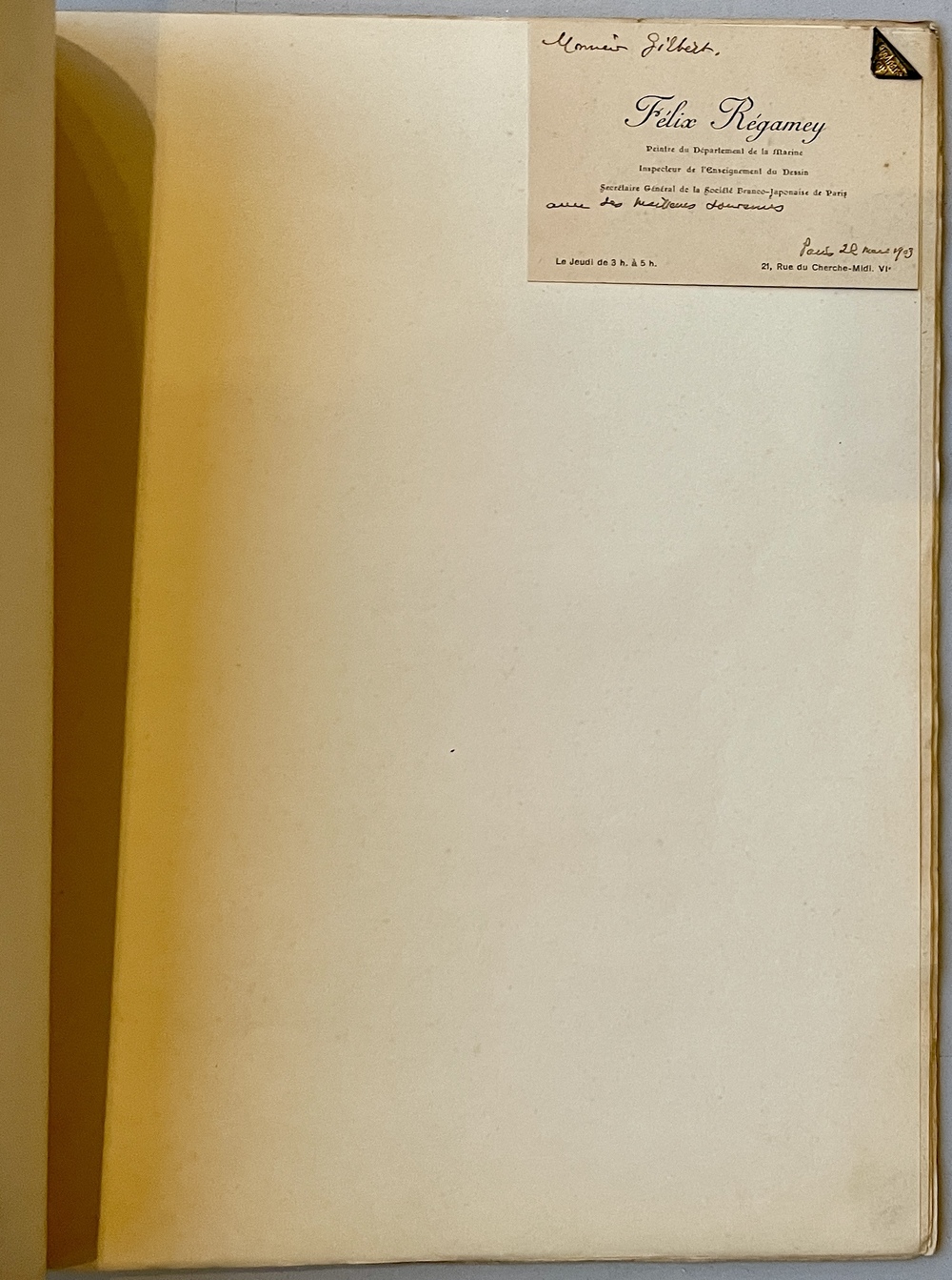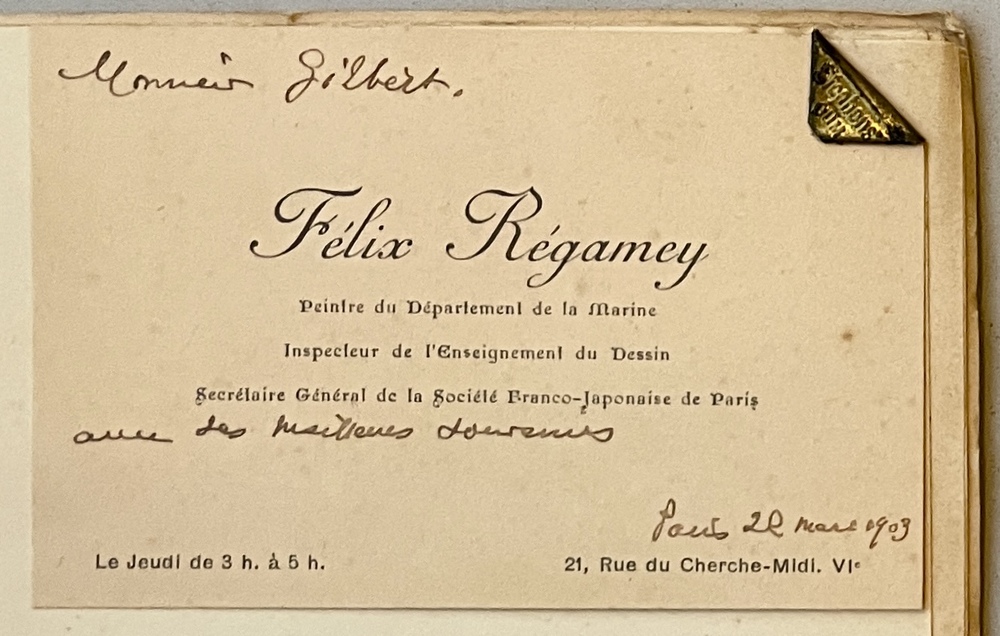 著者贈呈本、レガメの名刺ならびに横浜居留地1番ジャーディン・マセソン紹介関係者宛の封筒付属 [1889年] パリ刊