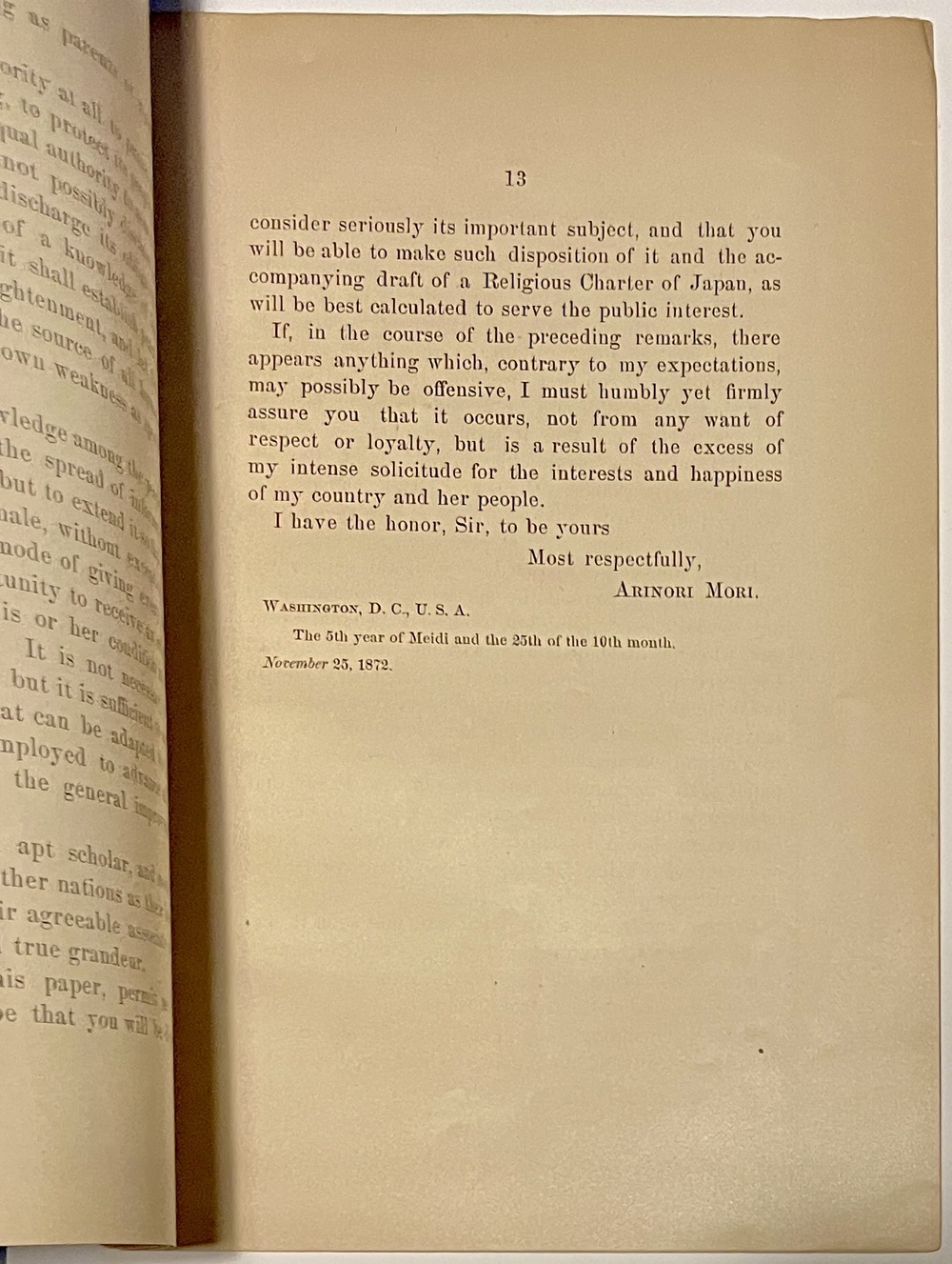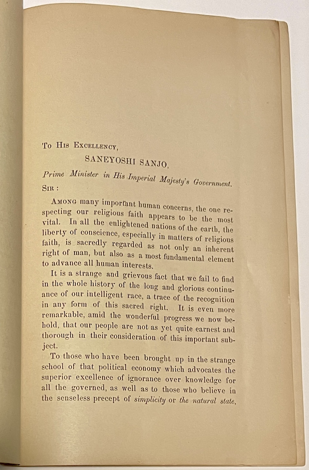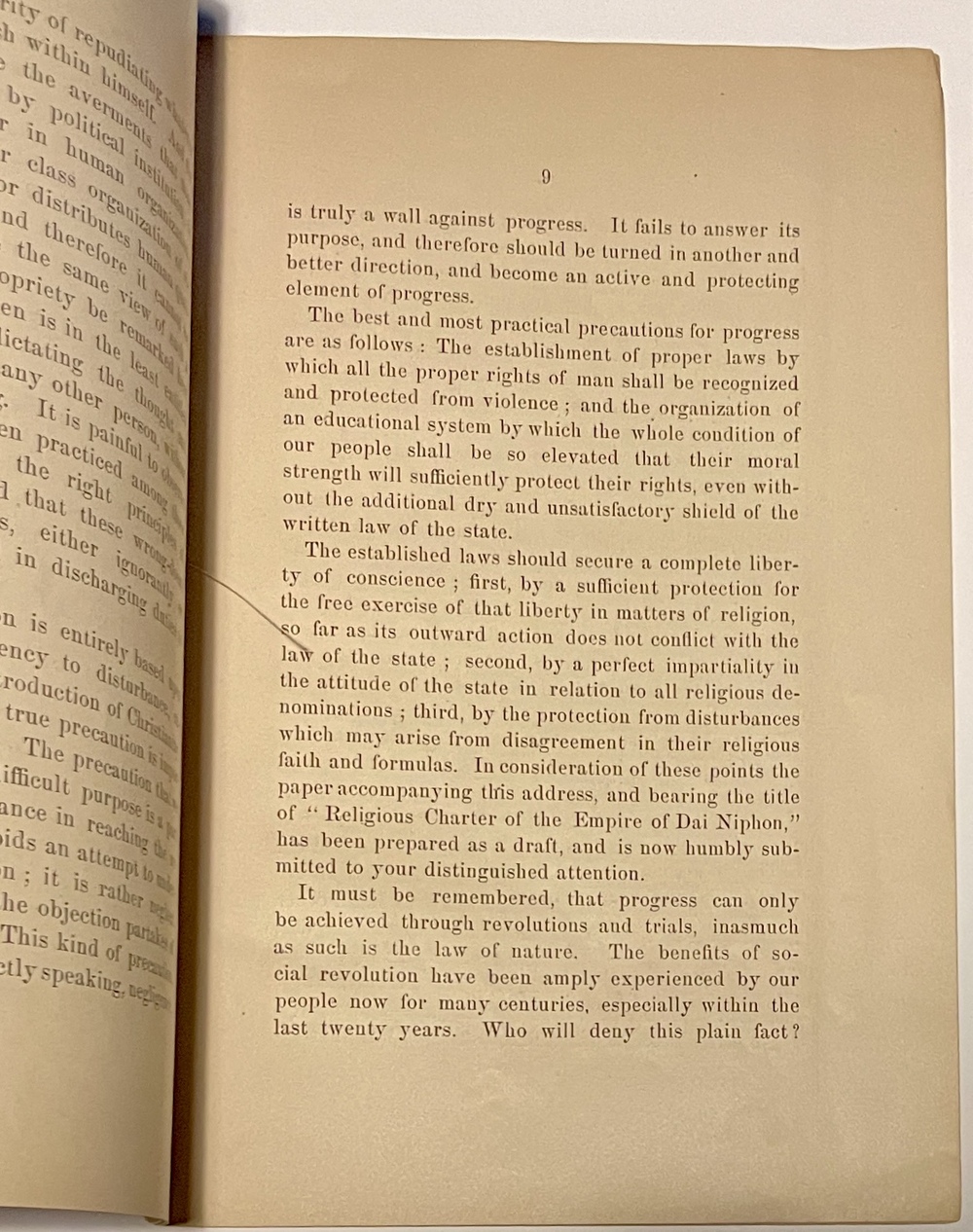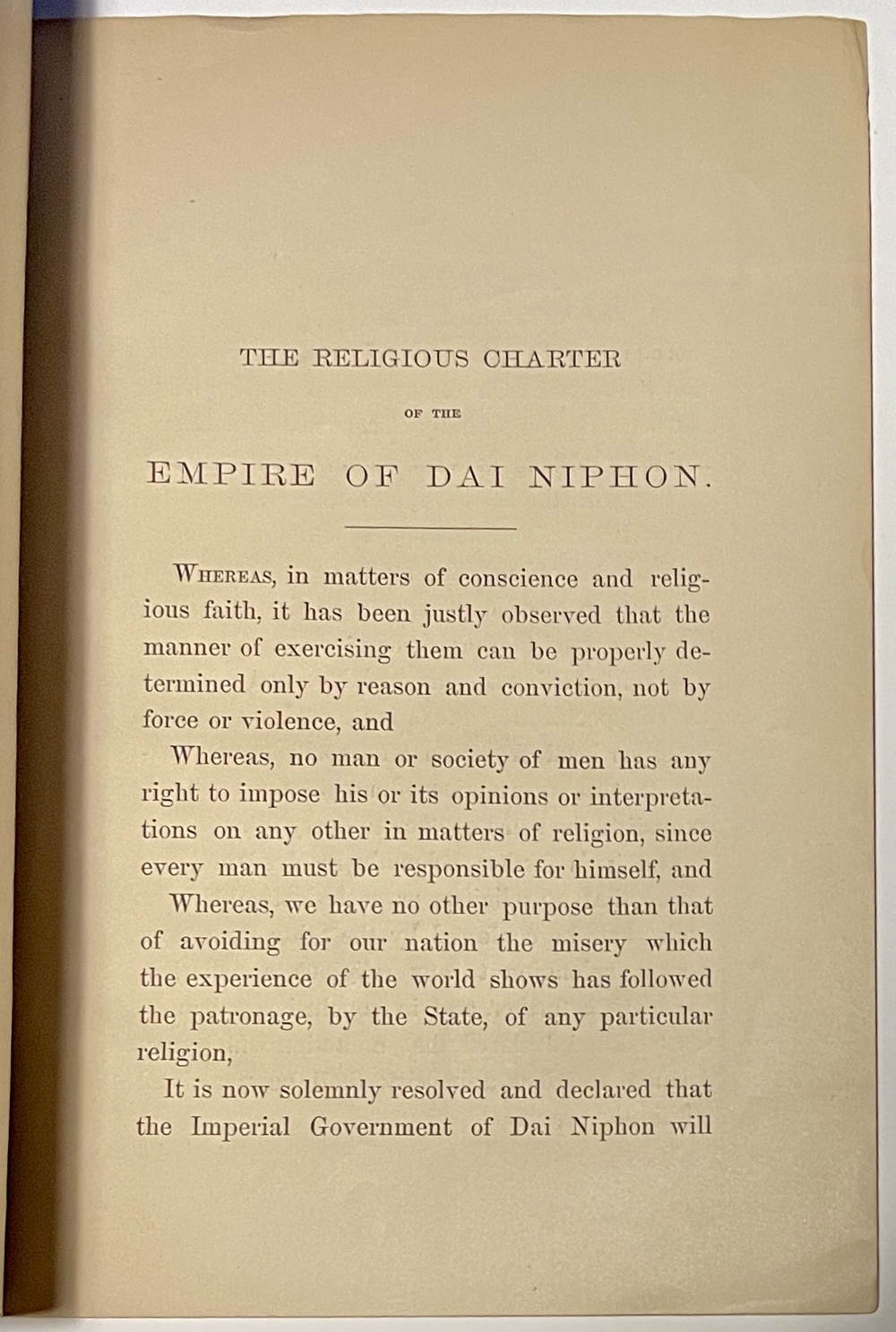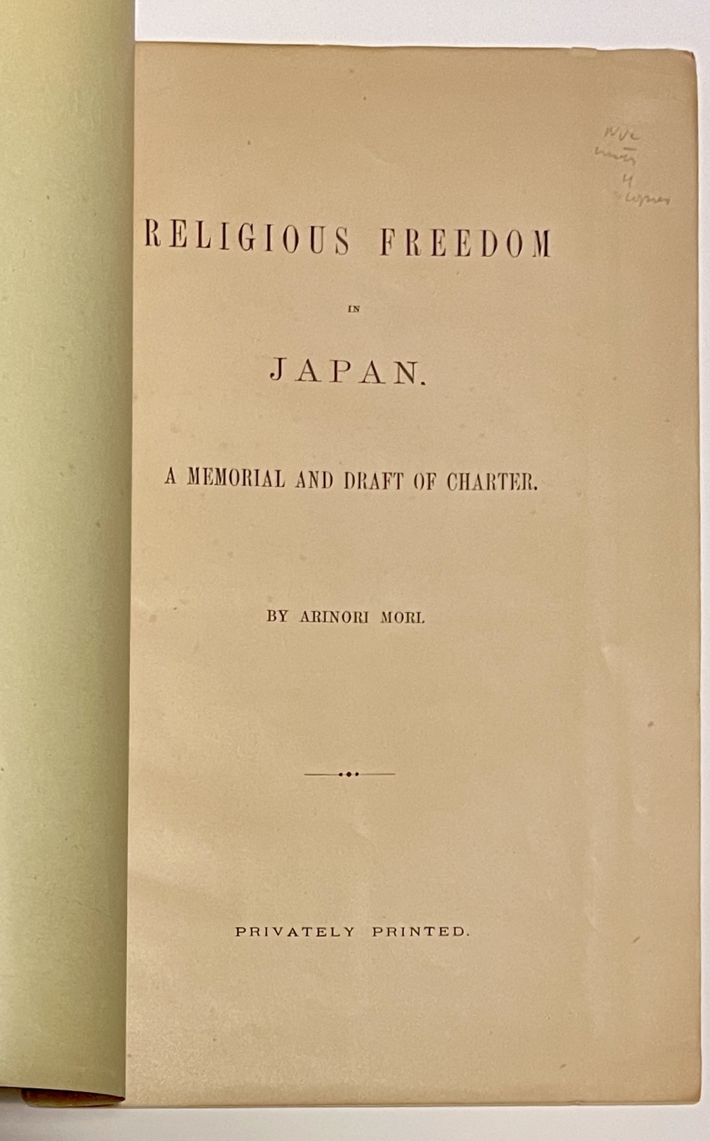 RELIGIOUS FREEDOM IN JAPAN. A MEMORIAL AND DRAFT OF CHARTER. PRIVATELY PRINTED.