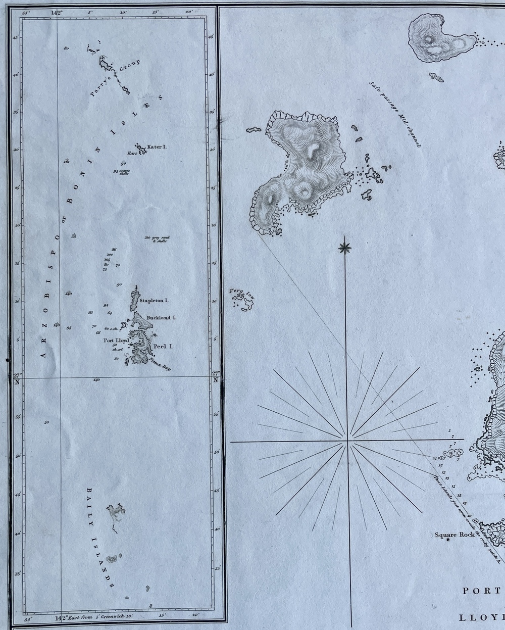 アルゾビスポ、あるいはボニン諸島の一つであるピール島の西岸にあるロイド港」(小笠原諸島父島二見港図)(海図)