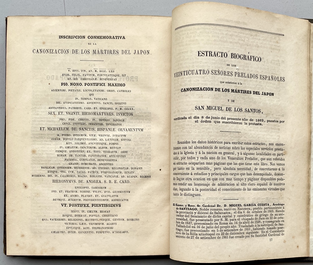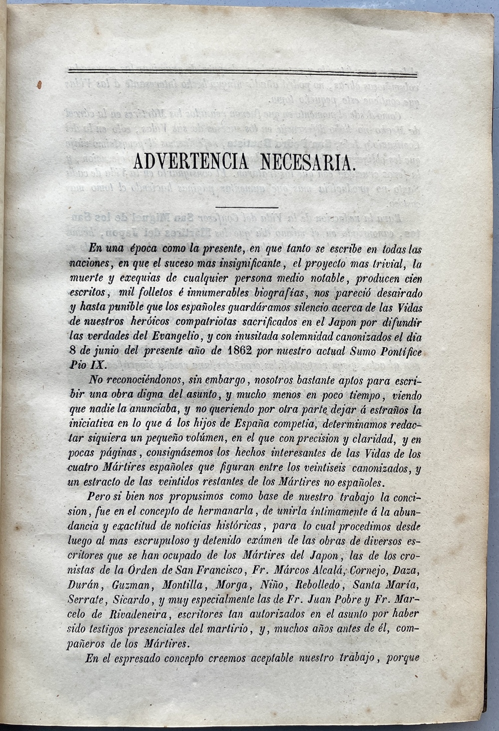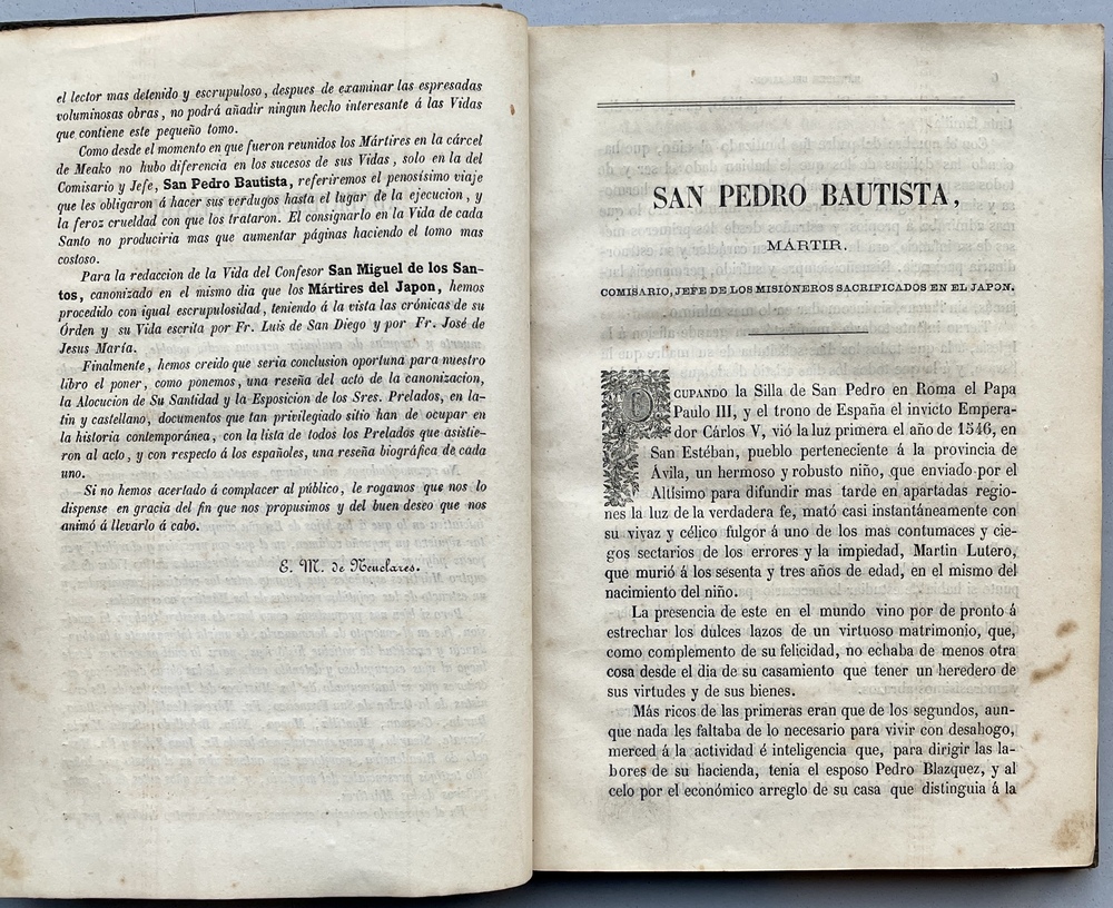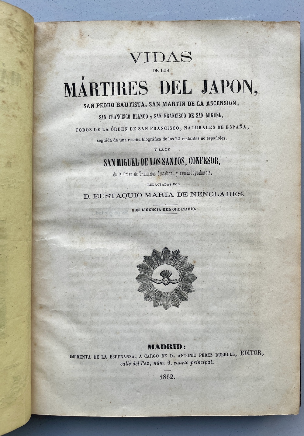 VIDAS DE LOS MÁRTIRES DEL JAPON, SAN PEDRO BAUTISTA, SAN MARTIN DE LA ASCENSION, SAN FRANCISCO BLANCO Y SAN FRANCISCO DE SAN MIGUEL, TODOS DE LA ÓRDEN DE SAN FRANCISCO, NATURALES DE ESPAÑA, seguidas de una reseña biográfica de los 22 restantes no españole
