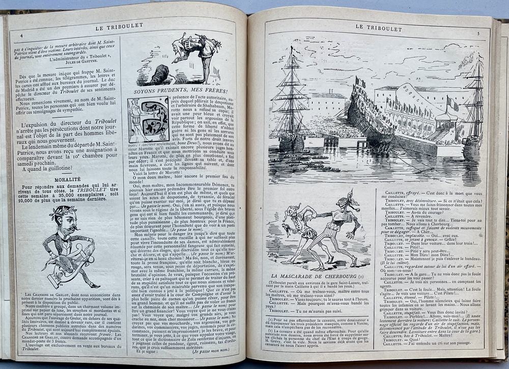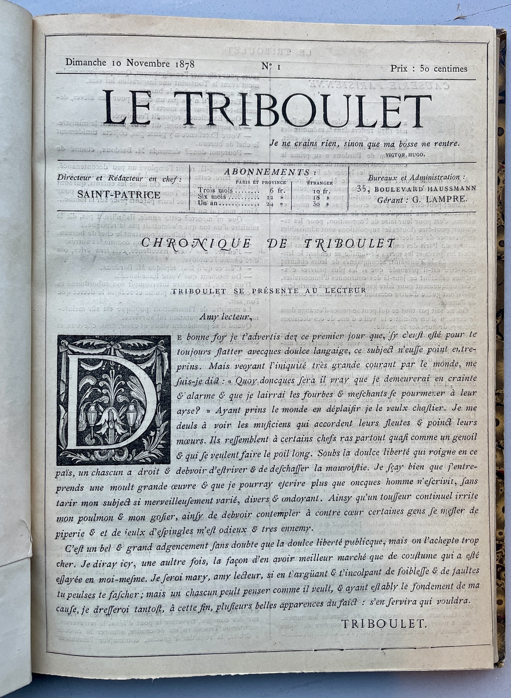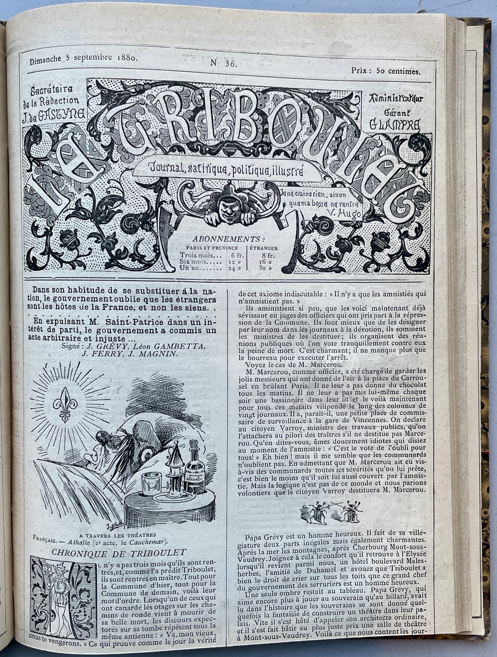 冒頭数葉の下部余白に破れが見られるが、テキストの大きな損傷はなく判読には大きな支障がないと思われる状態。後半にはフランス、ドイツ他中央ヨーロッパ諸国、都市の地図、ならびに雑誌『Le Triboulet』(1887-1880)が合冊されている。[BNF: FRBNF33419637]