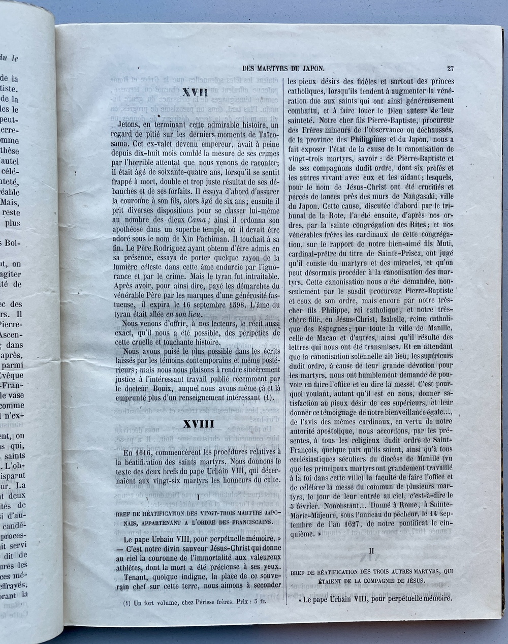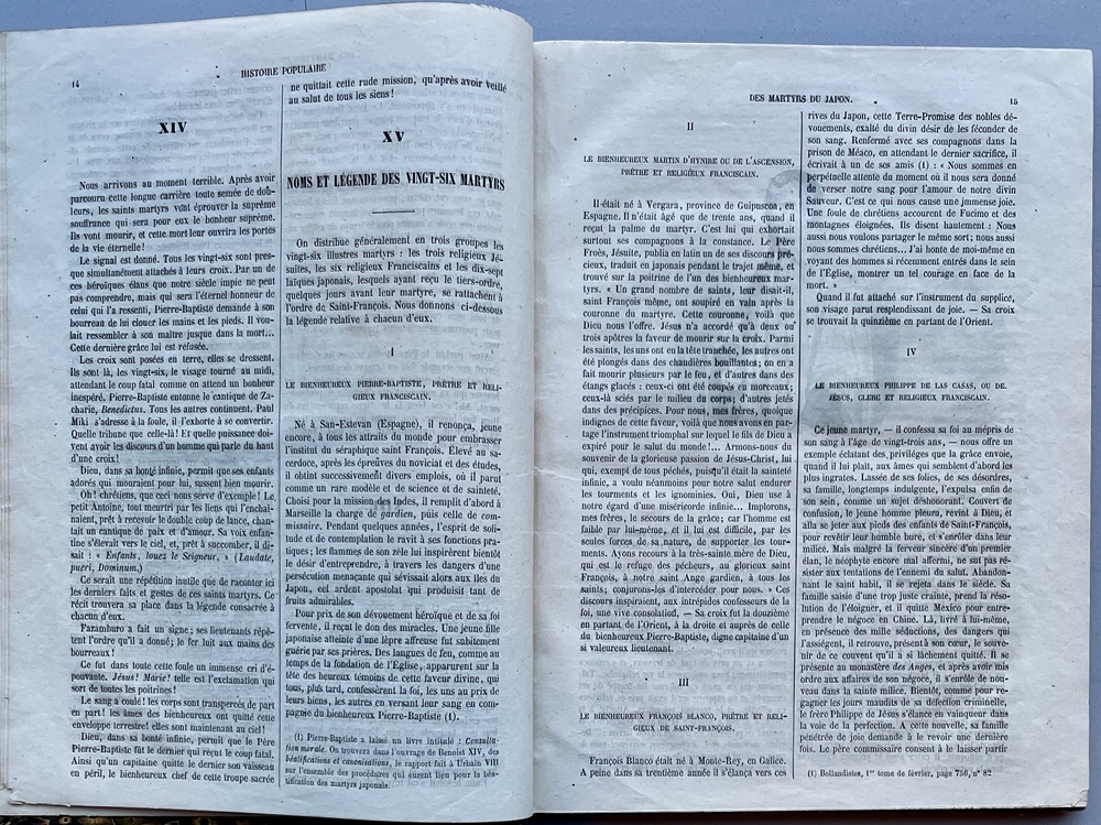 HISTOIRE POPULAIRE ILLUSTRÉE DES VINGT-SIX MARTYRS DU JAPON: CRUCIFIÉS A NANGASAKI LE 5 FÉVRIER 1597, BÉATIFIÉS A ROME LES 14 ET 15 SEPTEMBRE 1627, CANONISÉS LE JOUR DE LA PENTECOTE 1862.