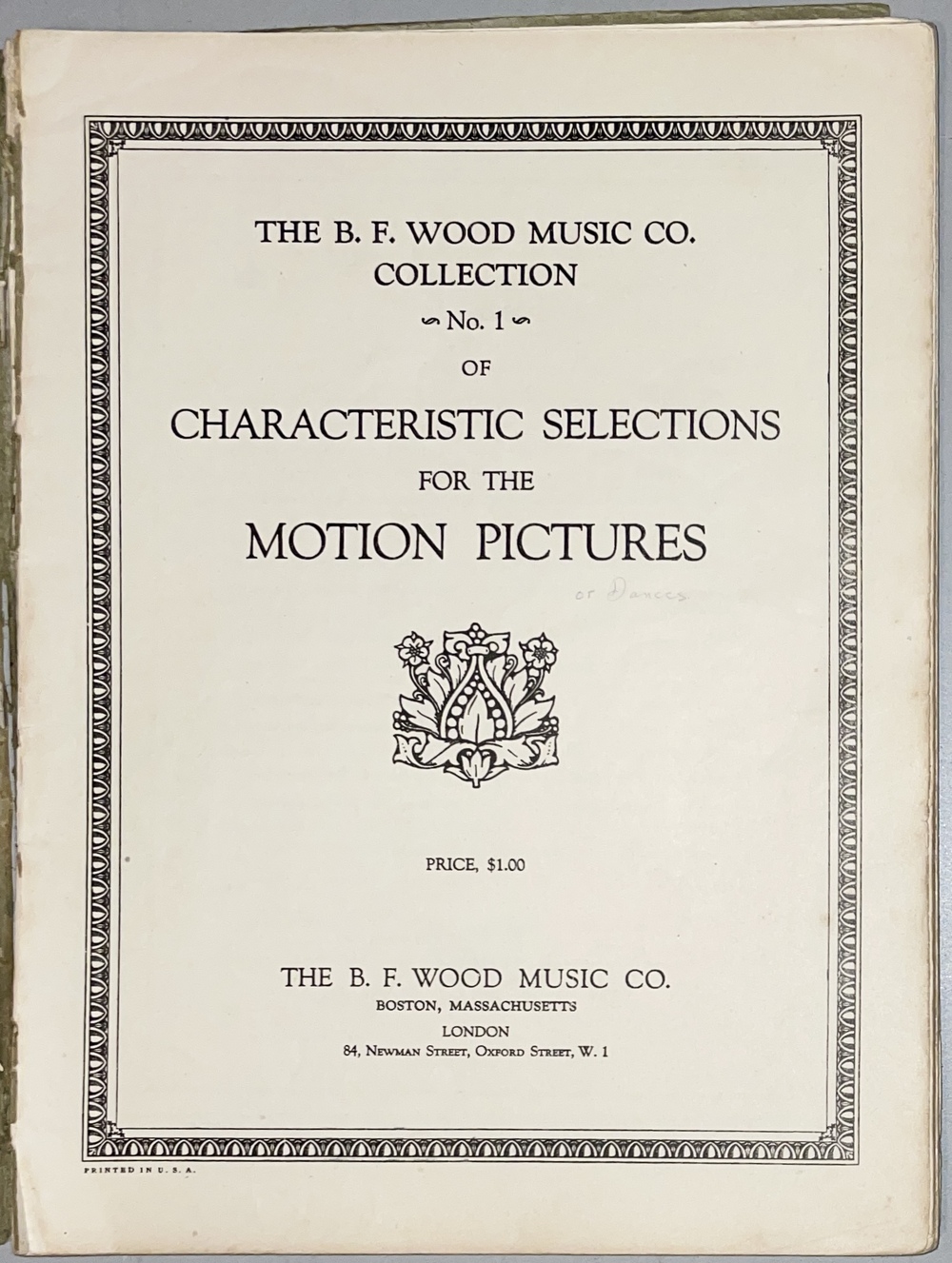 THE B.F. WOOD MUSIC CO. COLLECTION. No. 1 OF CHARACTERISTIC SELECTIONS FOR THE MOTION PICTURES.