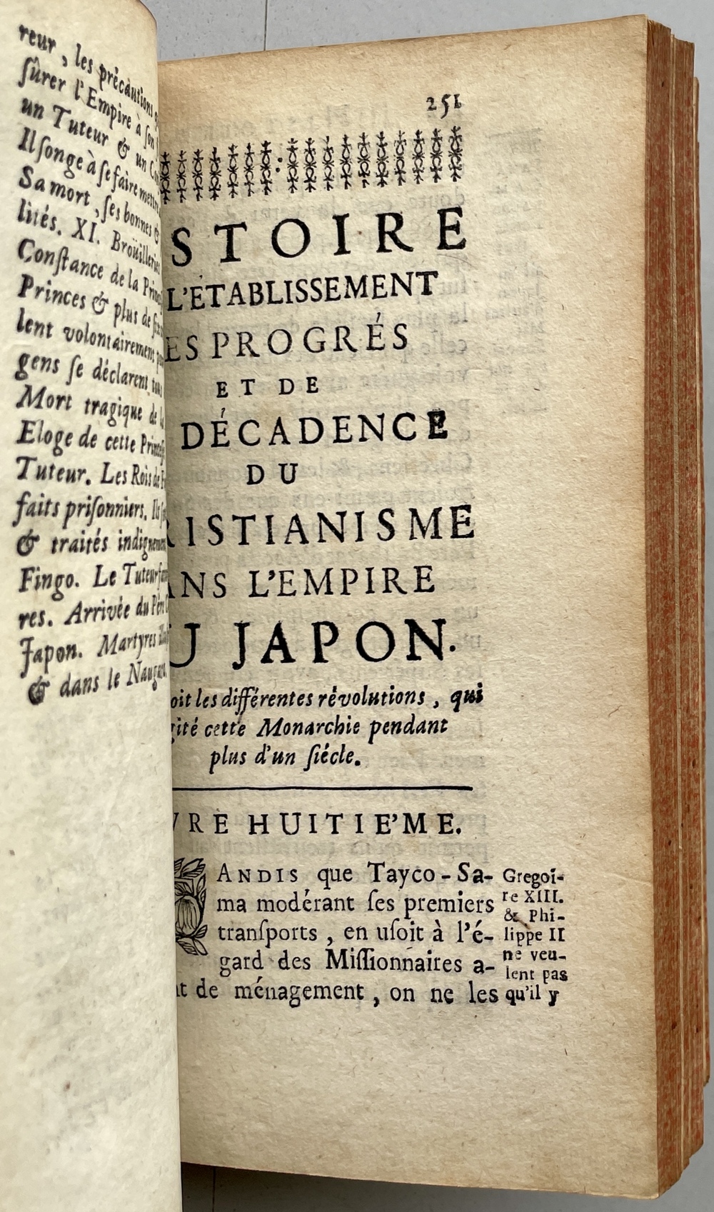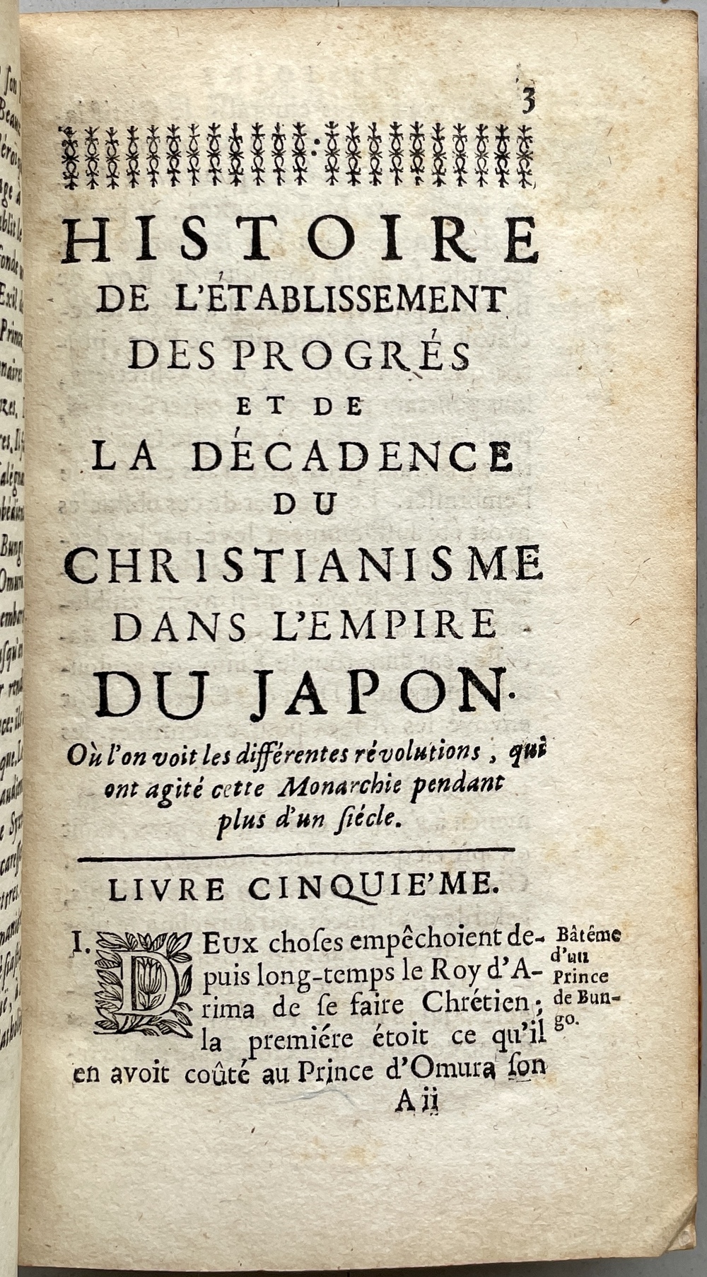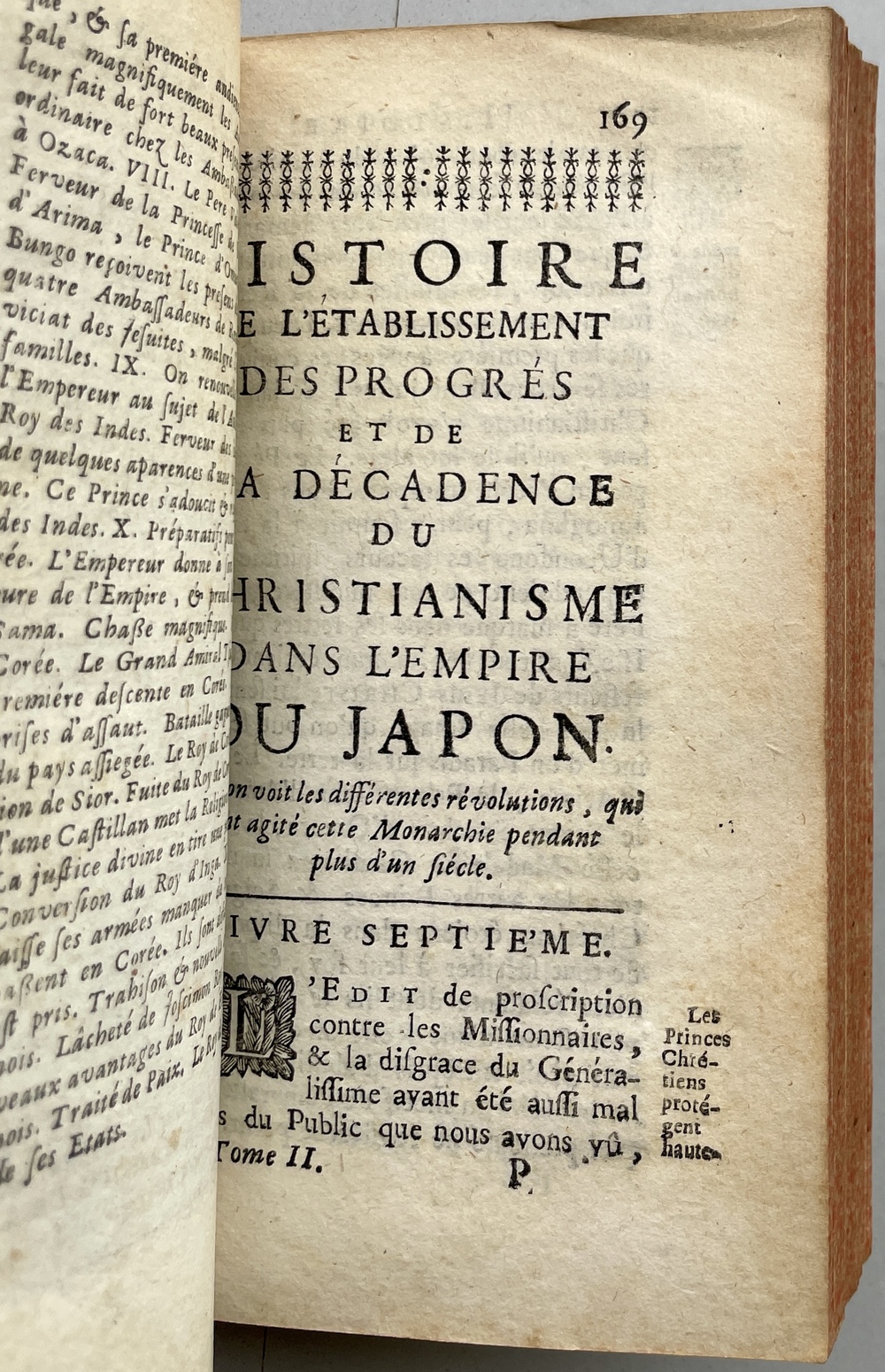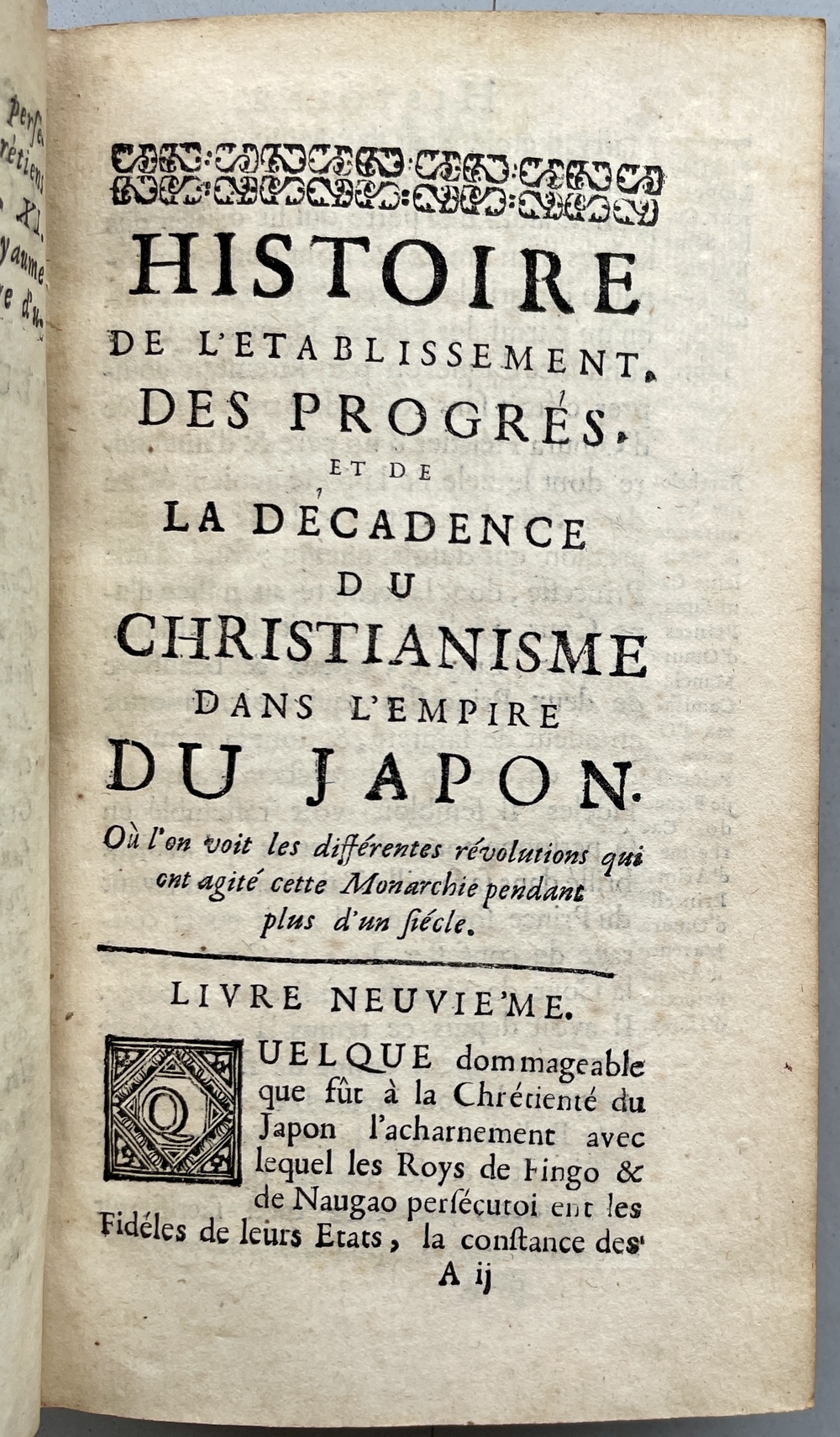 HISTOIRE DE L’ÉTABLISSEMENT, DES PROGRÉS ET DE LA DÉCADENCE DU CHRISTIANISME DANS L’EMPIRE DU JAPON.Où l'on voit les différentes Révolutions qui ont agité cette Monarchie pendant plus d’un Siécle.
