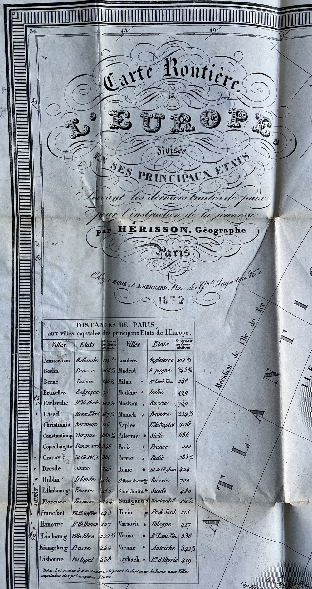 Carte Routière, DE L’EUROPE, divisée EN SES PRINCIPAUX ETATS Suivant les derniers traités de paix pour l’instruction de jeunesse…