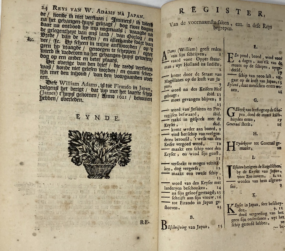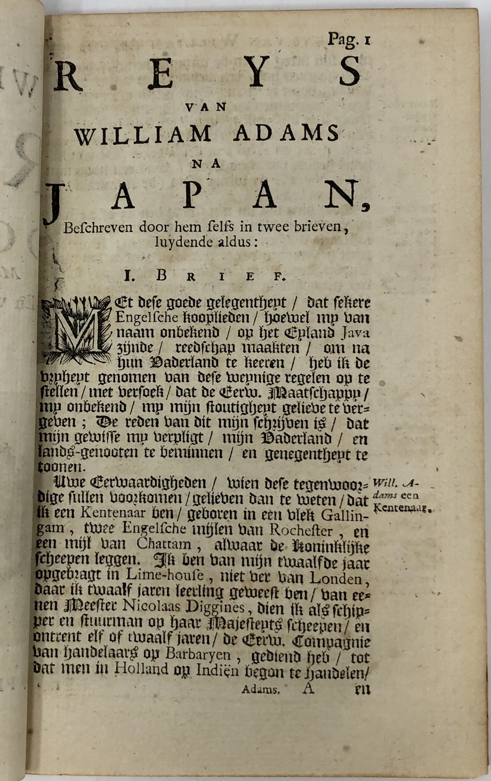 TWEE BRIEVEN VAN WILLIAM ADAMS; Wegens sijn REYS Uyt Holland na OOST - INDIEN, Met vijf Schepen, Anno 1598 en vervolgens. En wat ontmoetingen hem in Japan overgekomen zijn. Nu aldereerst uyt het Engelsch vertaald. Met Konst-Print en Register verrijkt.