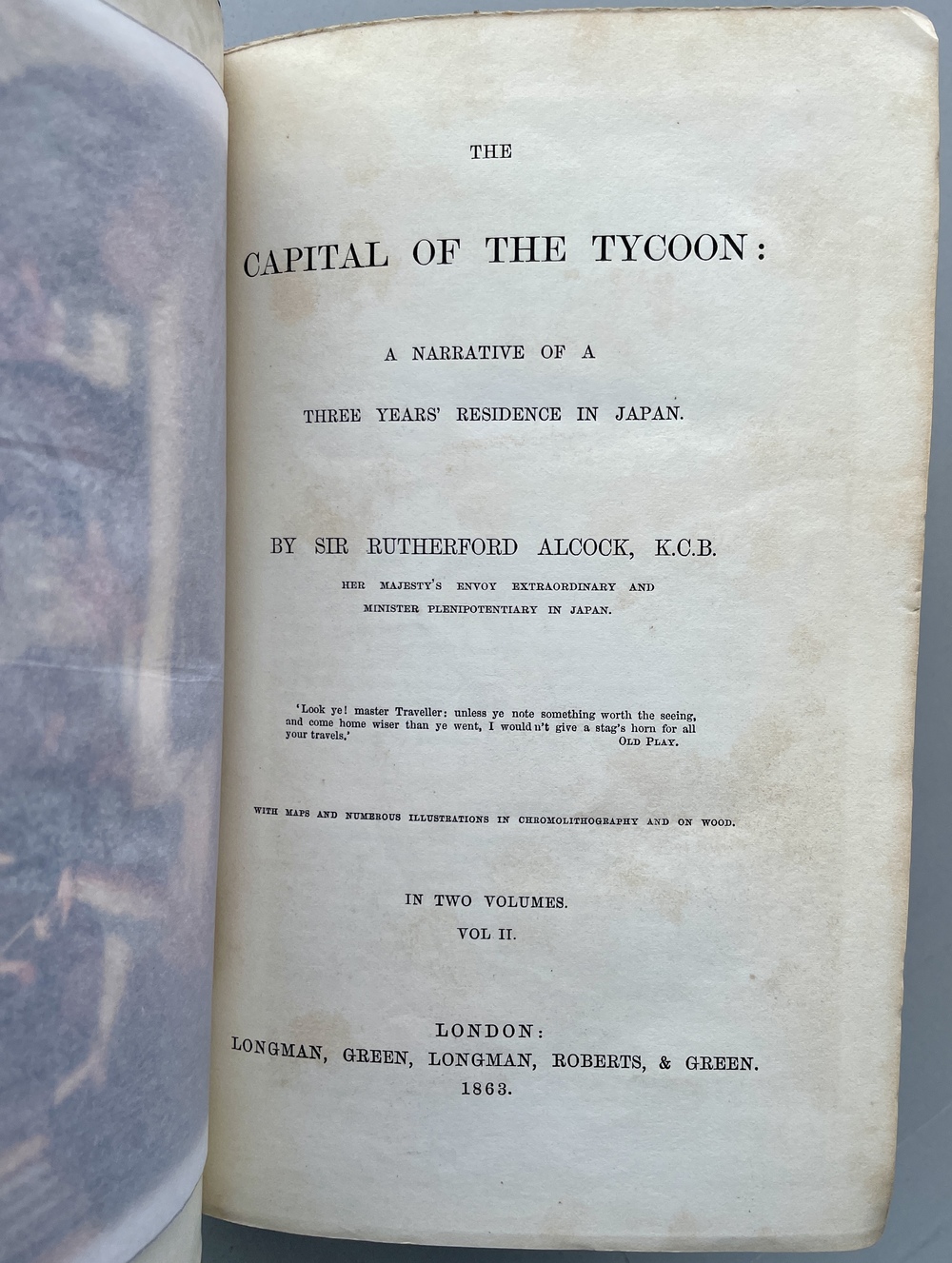 THE CAPITAL OF THE TYCOON: A NARRATIVE OF A THREE YEARS’ RESIDENCE IN JAPAN. WITH MAPS AND NUMEROUS ILLUSTRATIONS IN CHROMOLITHOGRAPHY AND ON WOOD. IN TWO VOLUMES.